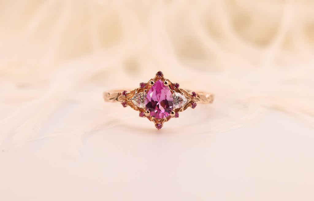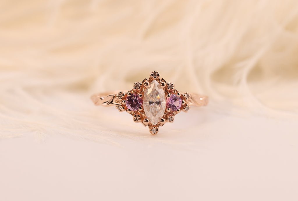 Ready to ship, Size 5.5 18k rose, Briar moon three stone