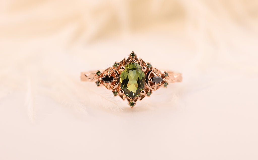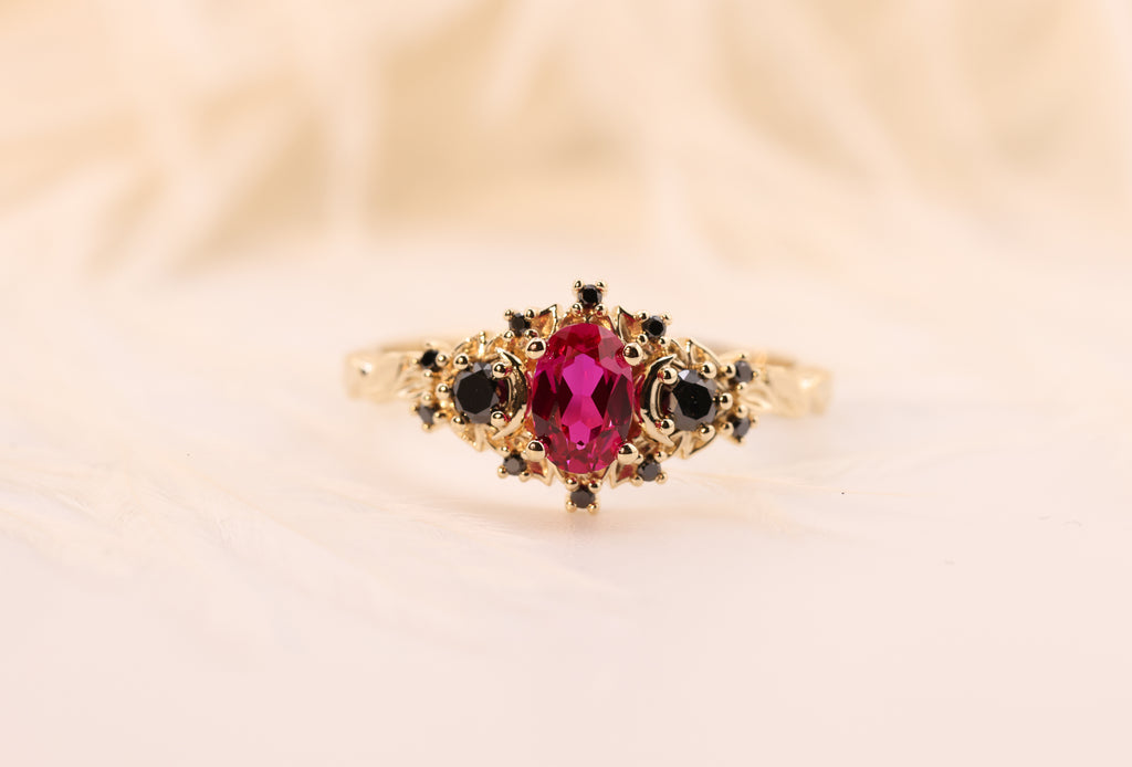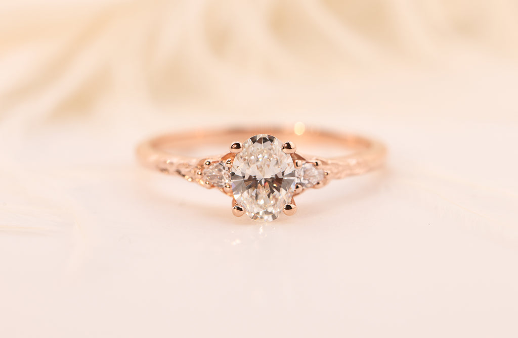 Ready to ship, Size 7 14k rose, Briar moon three stone