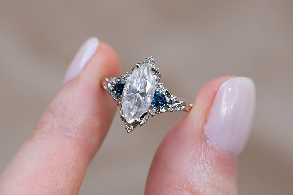 Ready to Ship - Size 5.5, platinum Briar Rose Three Stone