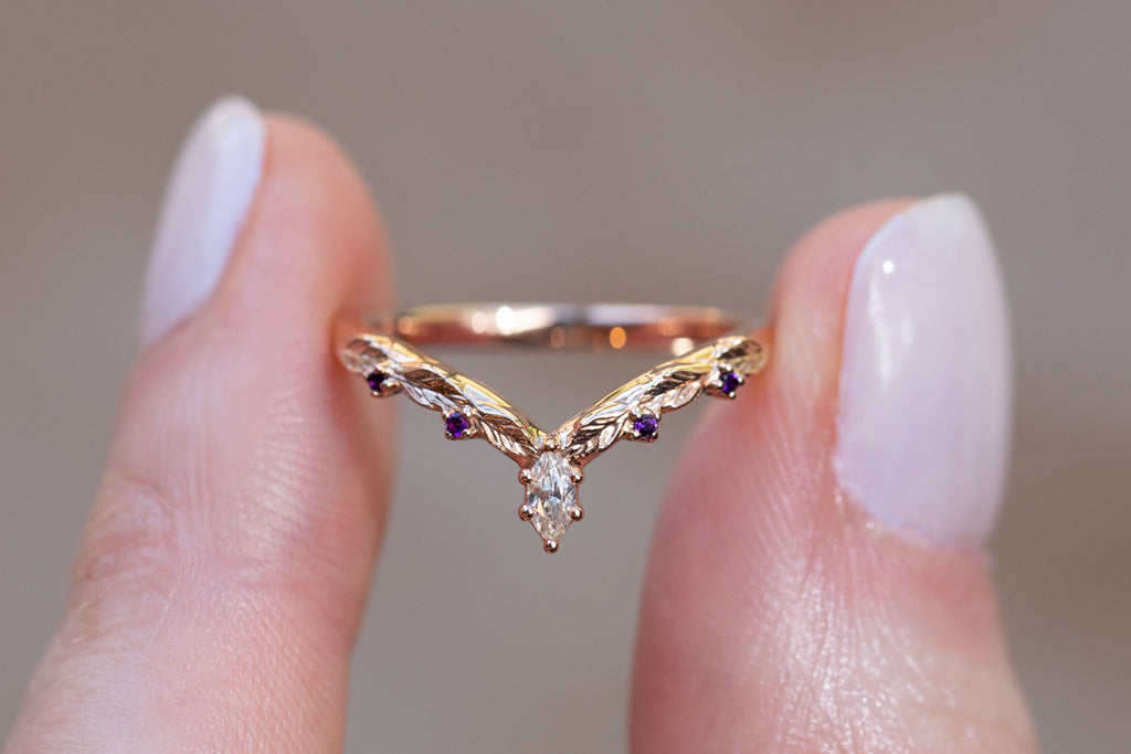 Ready to Ship - Size 7.5, 14k rose gold Chevron Leafy Wedding Band