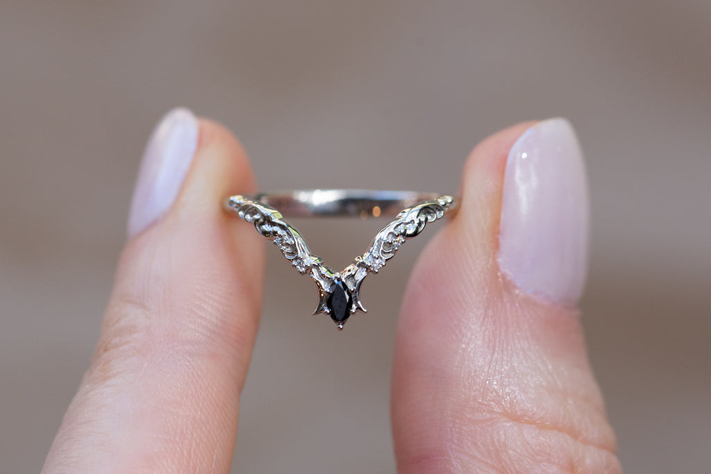 Ready to Ship - Size 7, platinum Curved Filigree Band with Moons