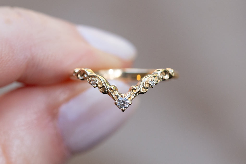 Ready to Ship - Size 5.25, 14k yellow gold Curved Filigree Wedding Band