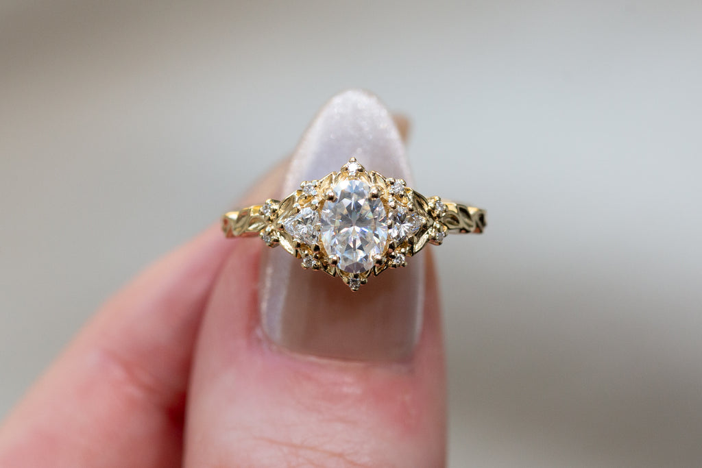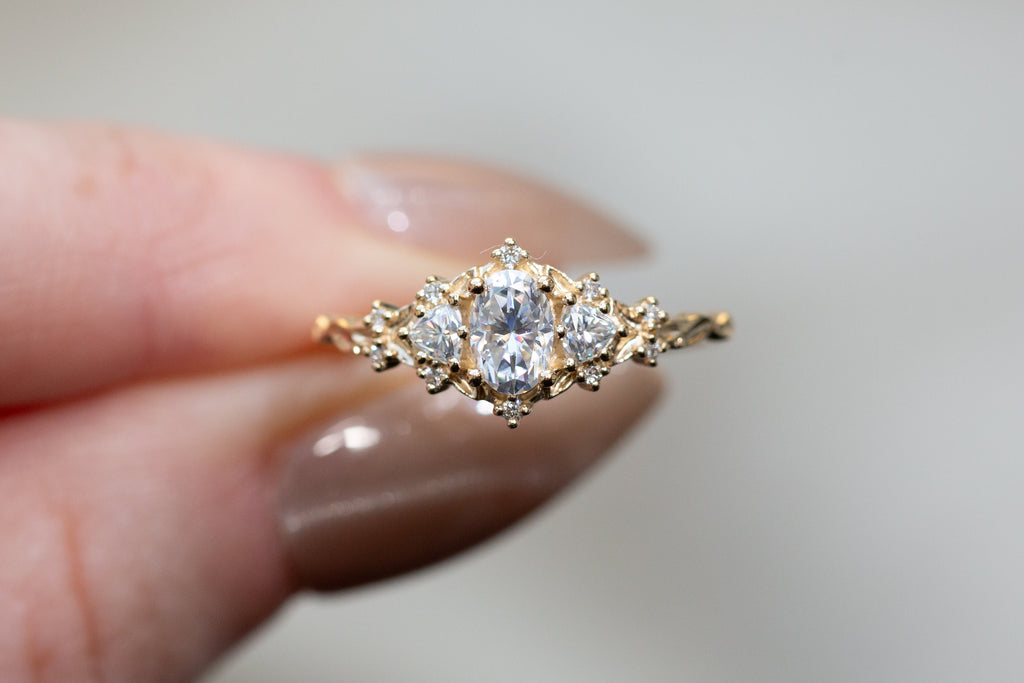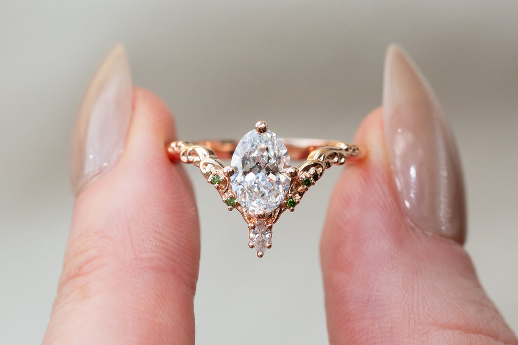 Ready to ship- Size 7, 14k rose gold Curved Filigree with oval lab diamond