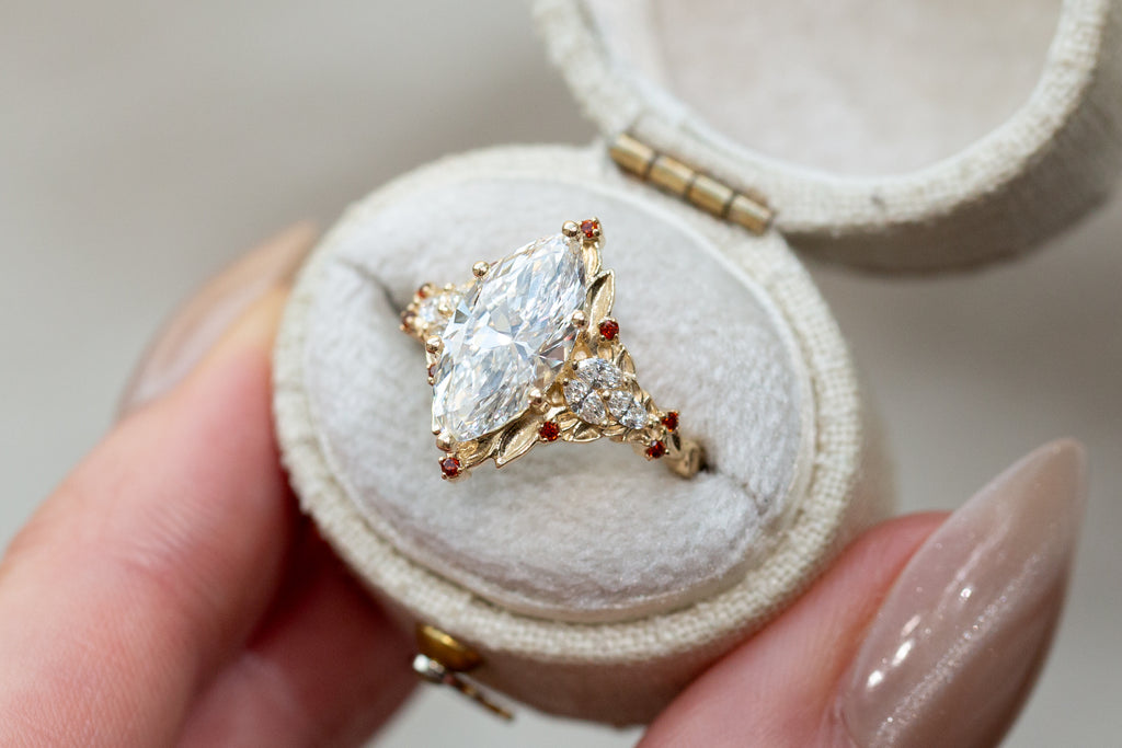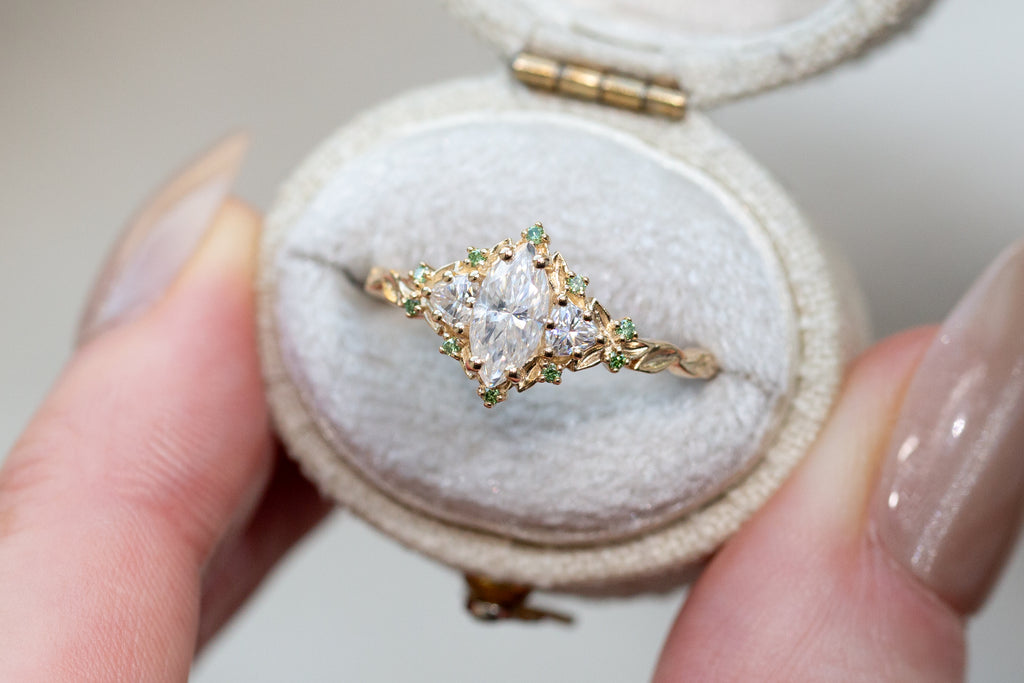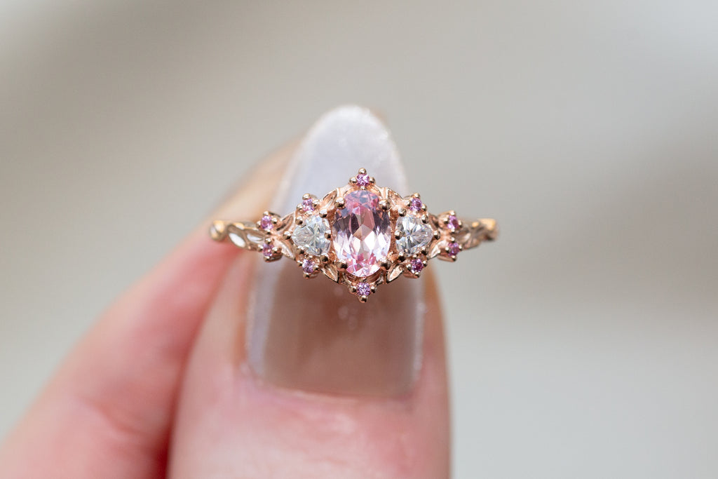 Ready to ship- Size 5.5, 14k rose gold Briar Moon Three Stone