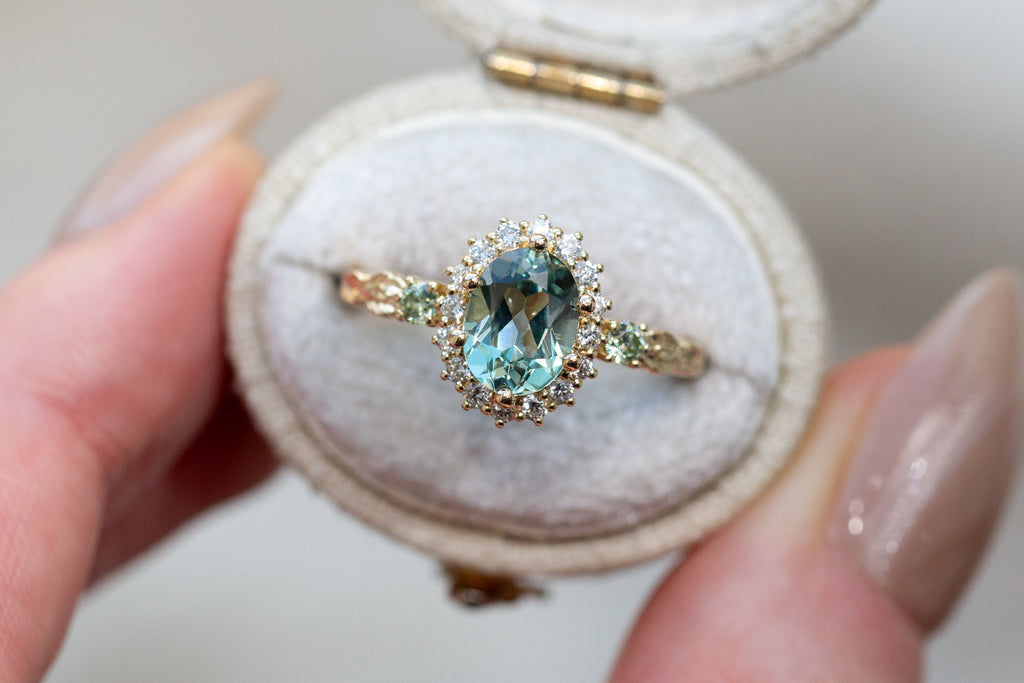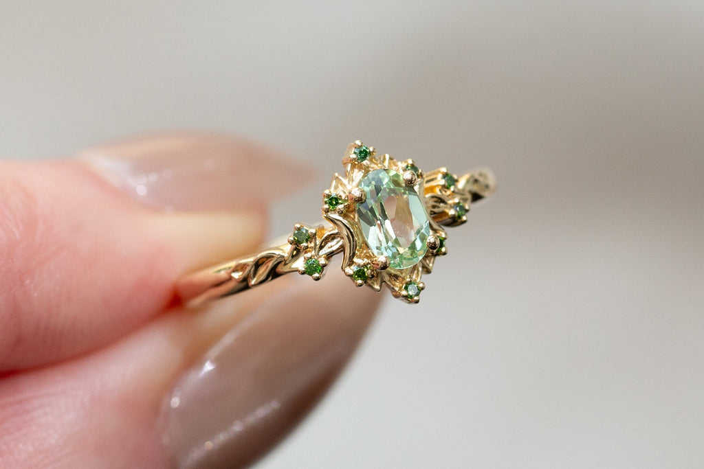 Ready to ship- Size 7, 14k yellow gold Briar Rose Halo Moon