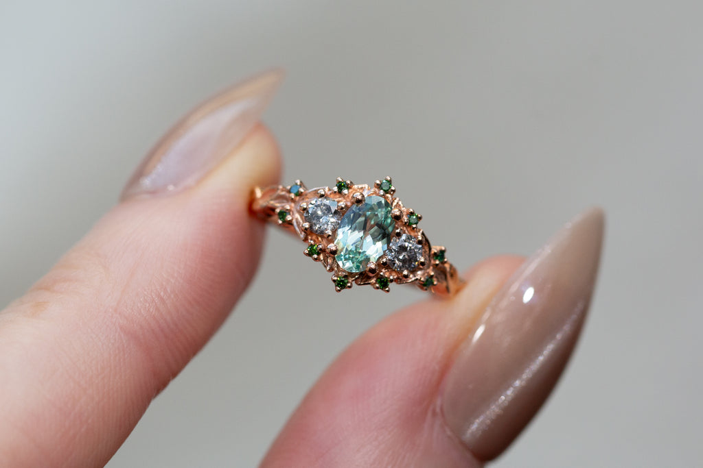 Ready to ship- Size 5, 14k rose gold Briar Rose Three Stone