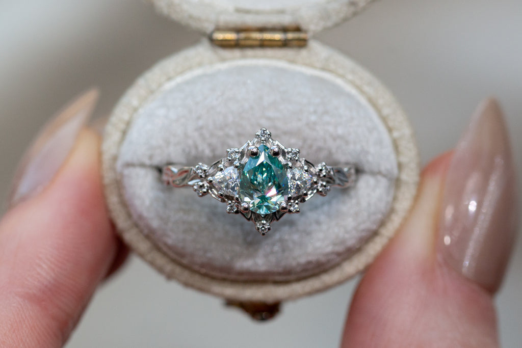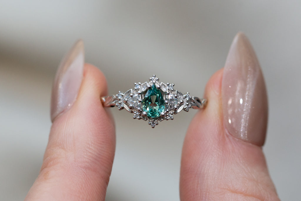 Ready to ship- Size 7, platinum Briar Rose Three Stone