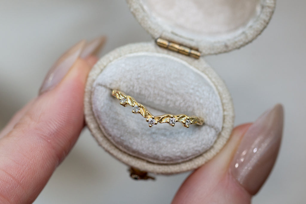 Ready to ship- Size 7.5, 18k yellow gold Chevron Leafy Wedding Band