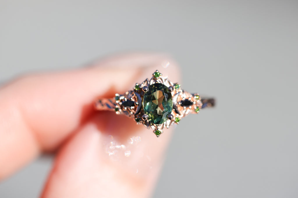 Ready to ship, Size 7 14k rose, Briar moon three stone