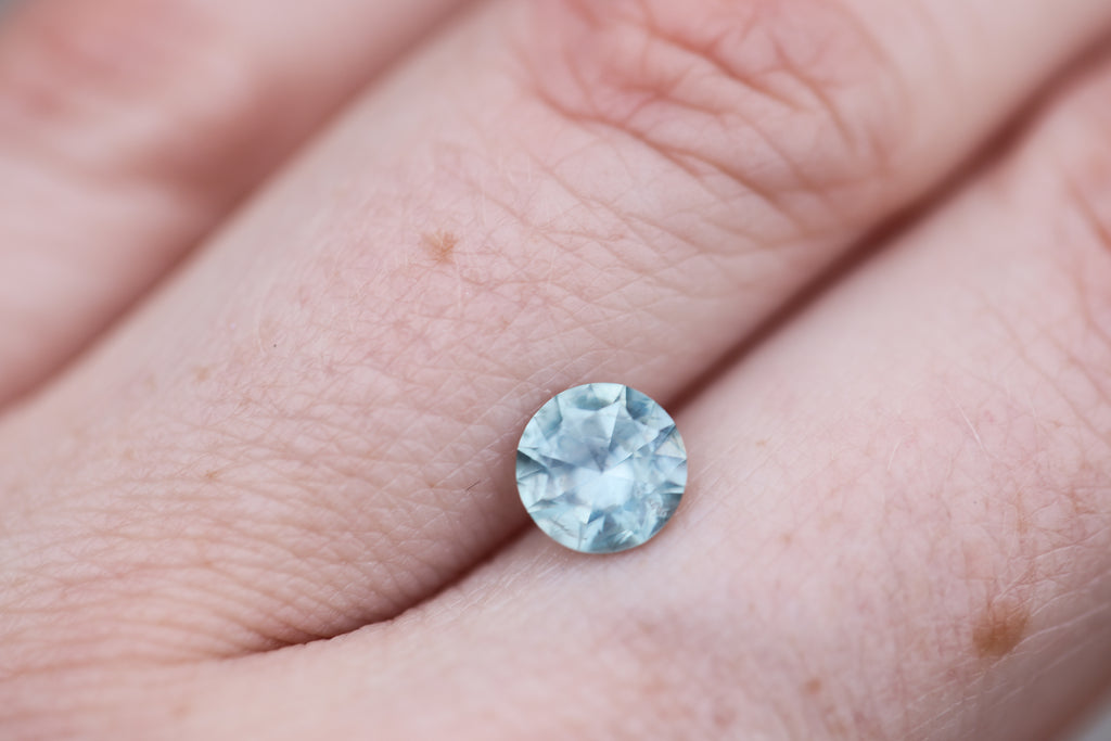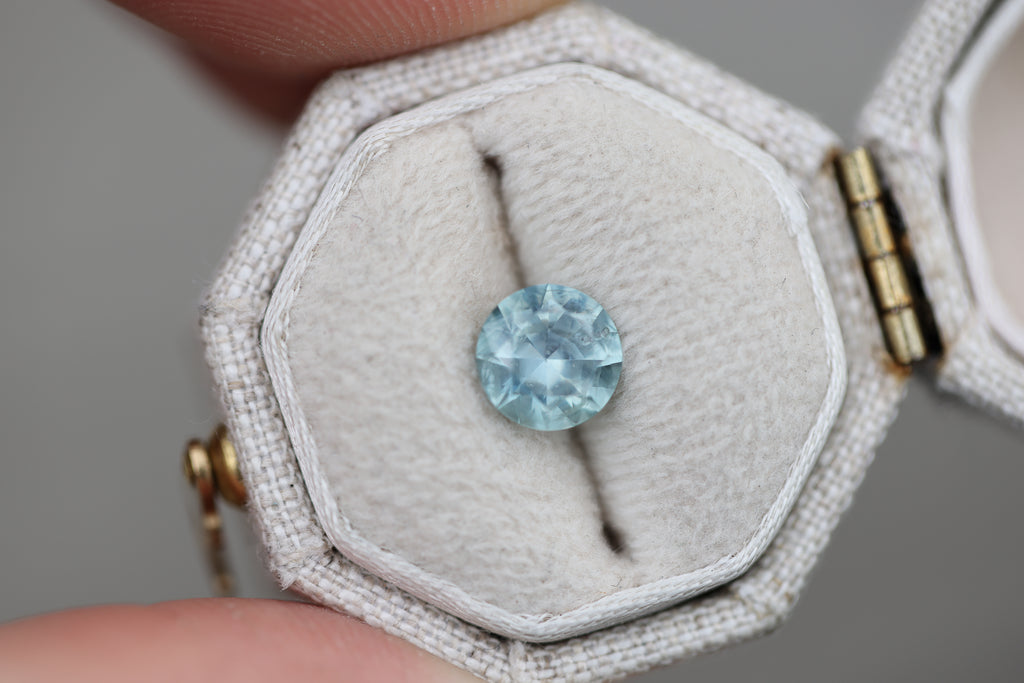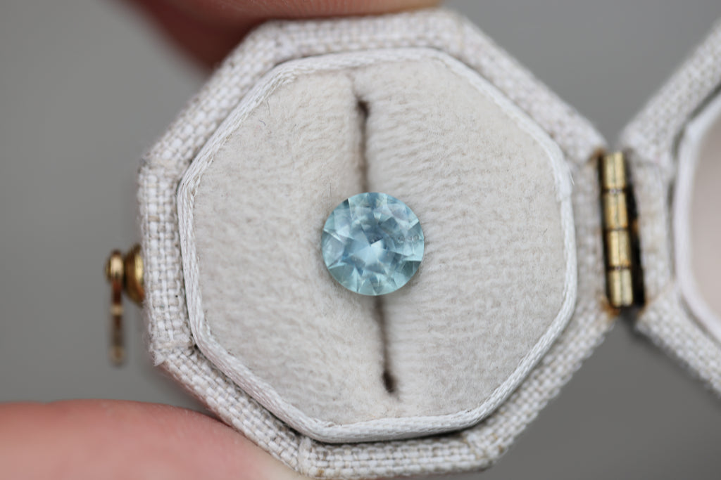 This stunning round teal blue sapphire has the most magical icy coloring and ethereal opaqueness - an absolutely beauty!