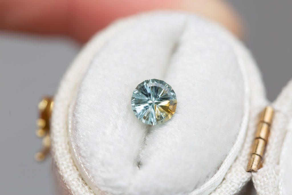 1.29ct light blue with orange round StarBrite sapphire- Cut by John Dyer