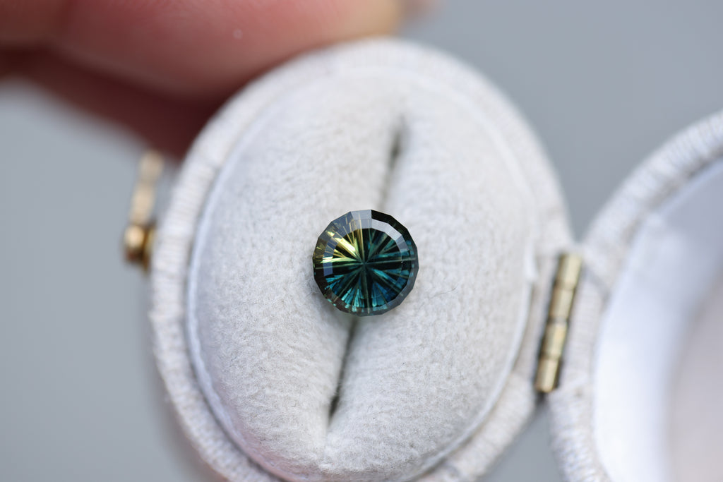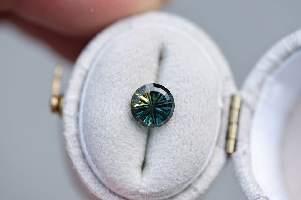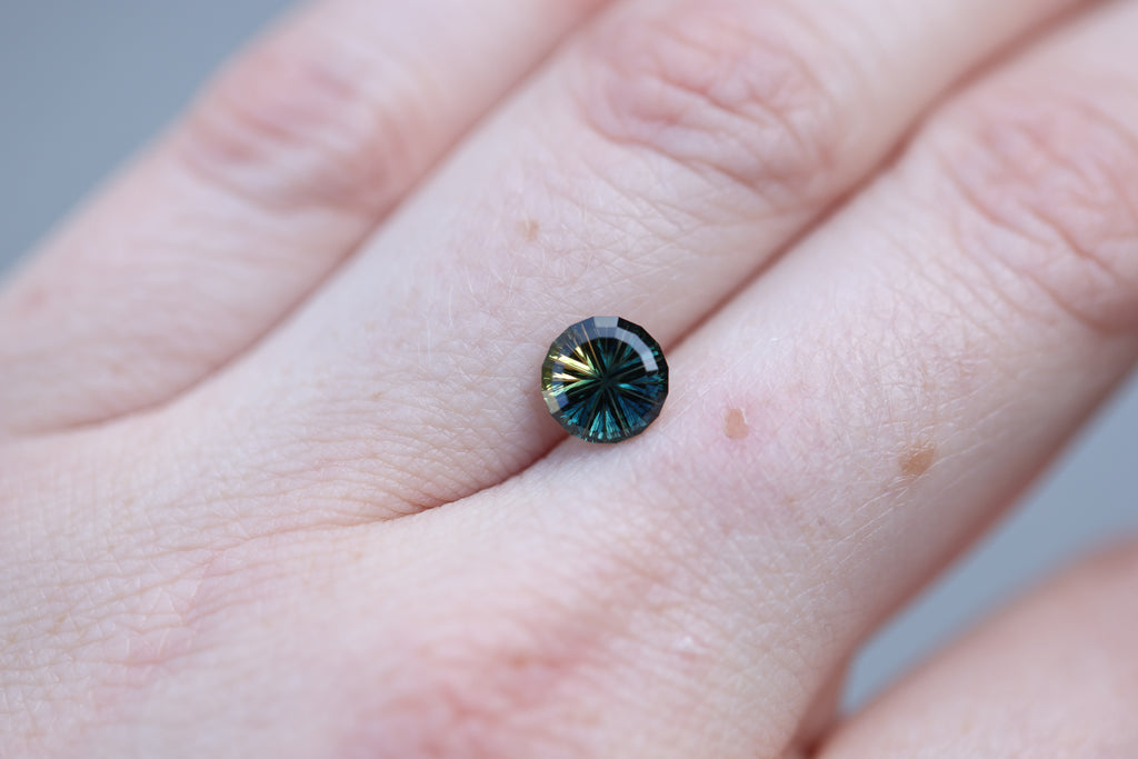 1.49ct round blue yellow parti sapphire- Starbrite cut by John Dyer