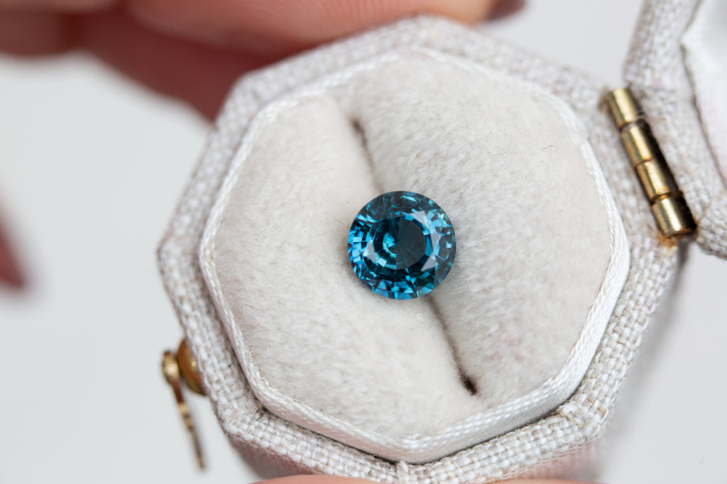 This gorgeous round sapphire is a vibrant blue with lots of sparkle!