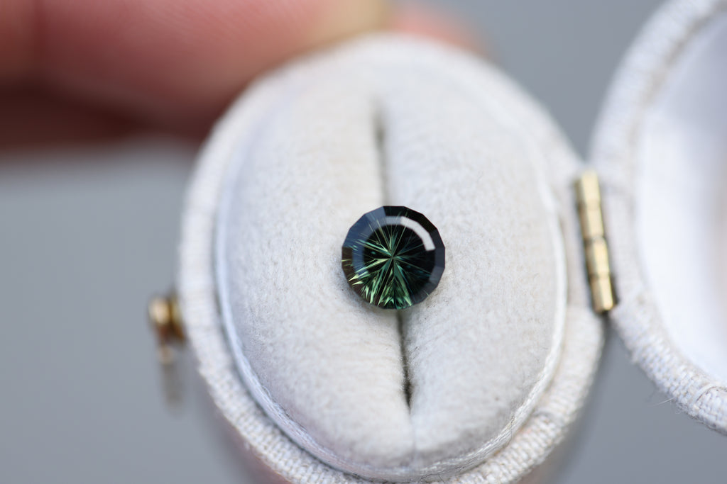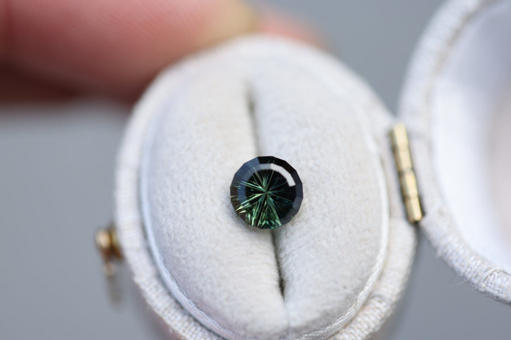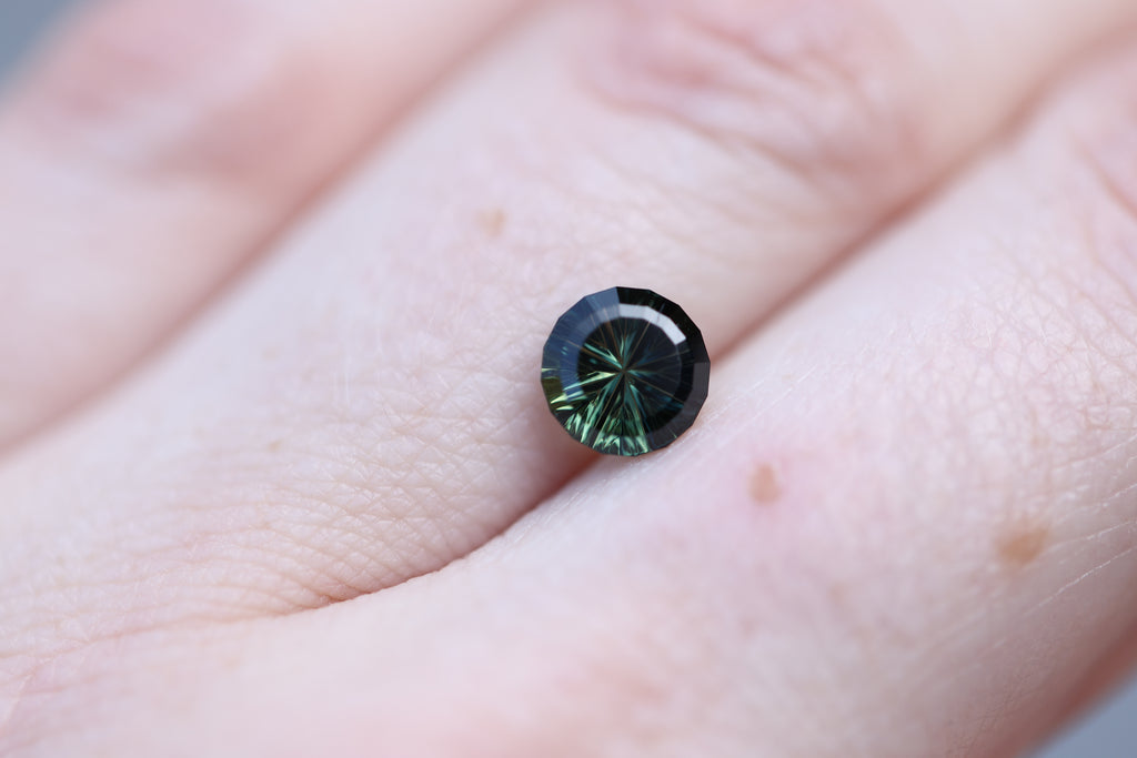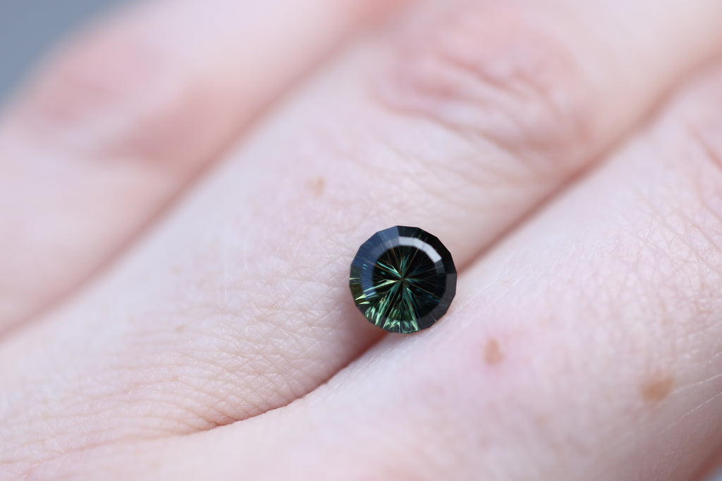 1.56ct round DARK blue green parti sapphire- Starbrite cut by John Dyer
