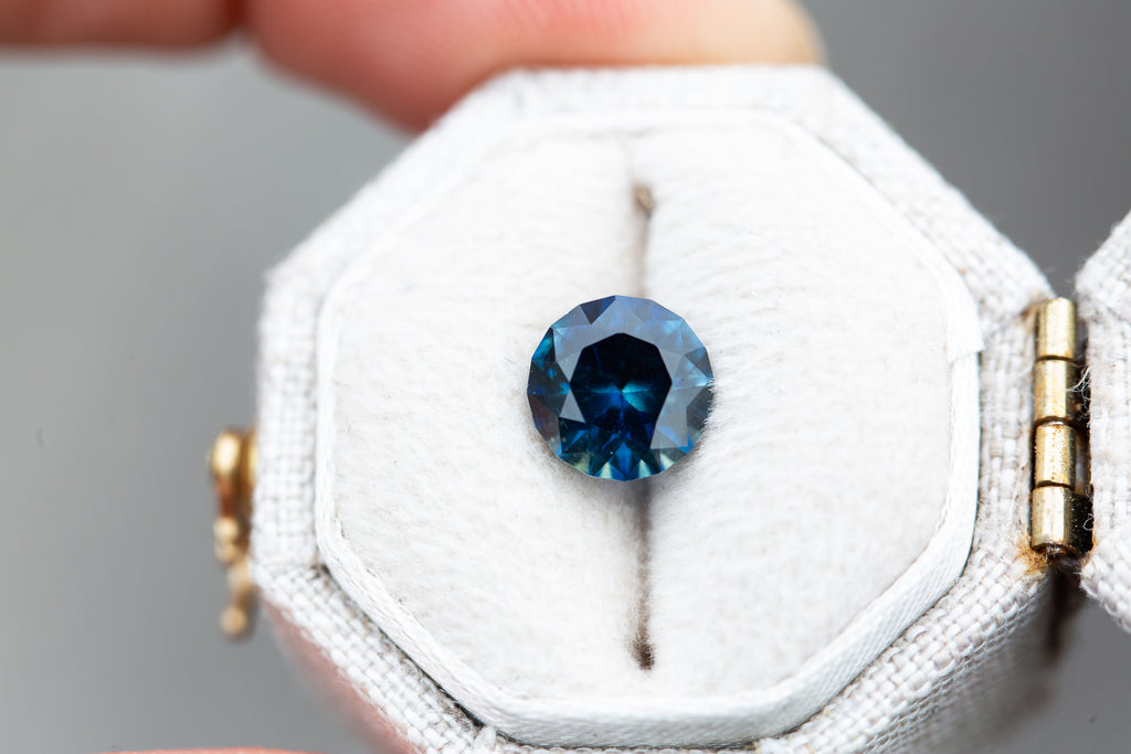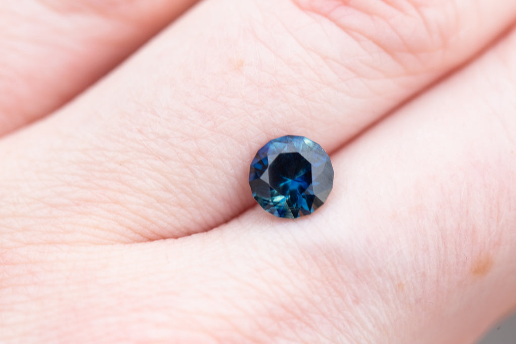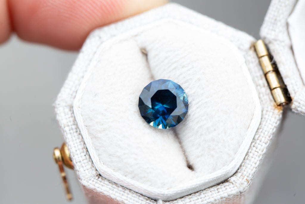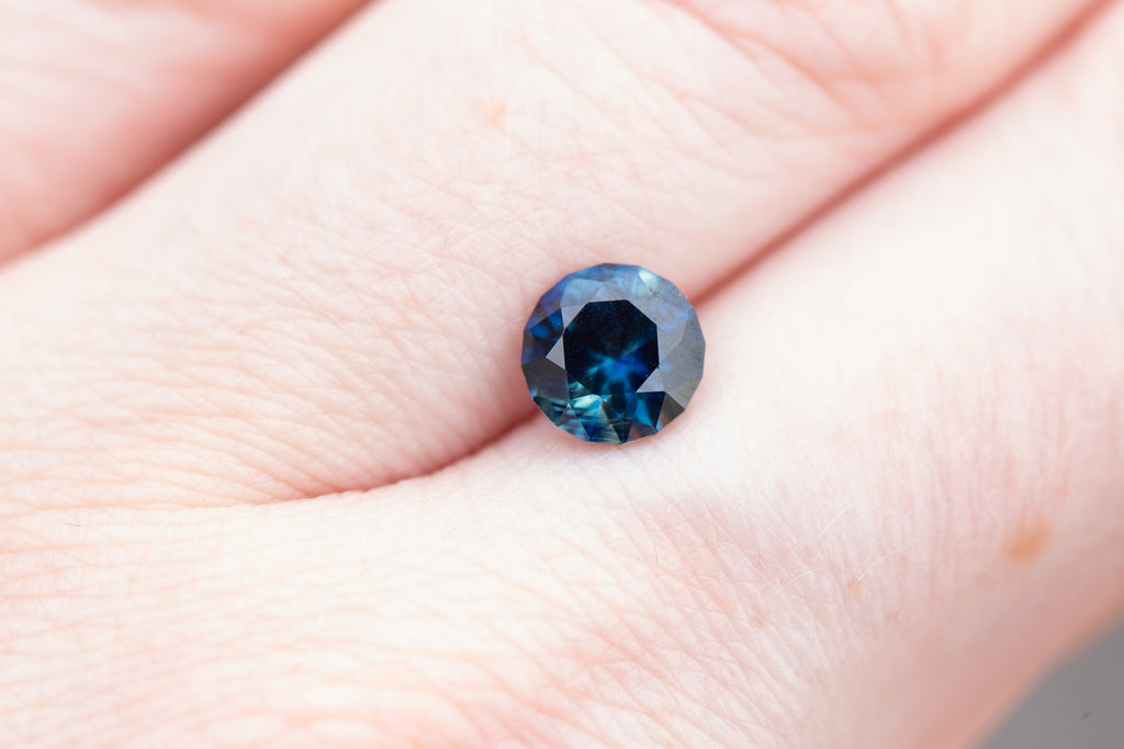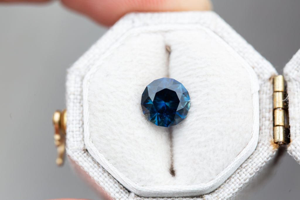 This stunning round sapphire is the most incredible deep blue with beautiful faceting for such lovely sparkle!