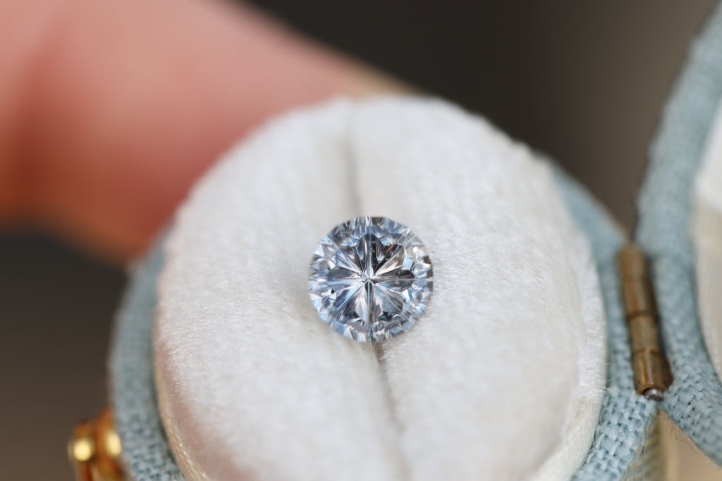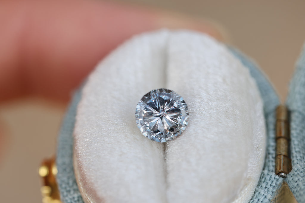 1.66ct round light grey blue sapphire- Starbrite cut by John Dyer