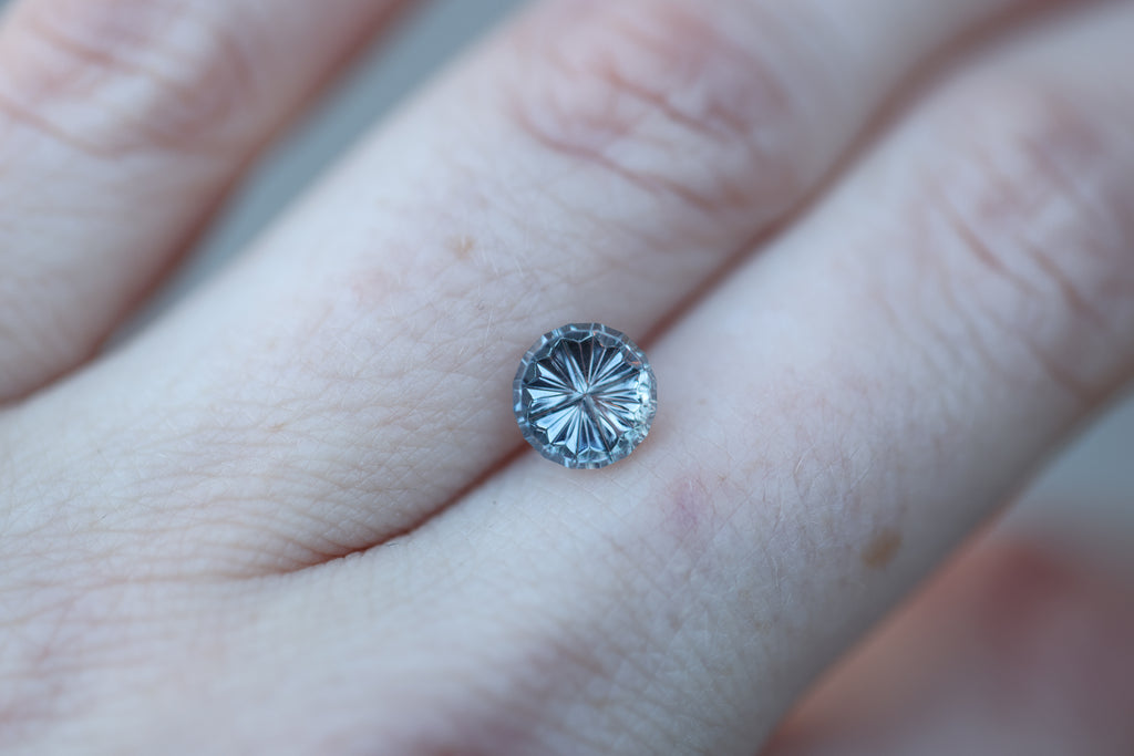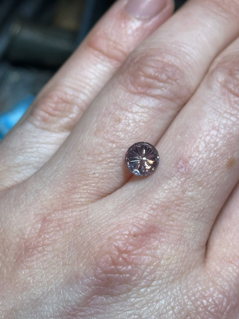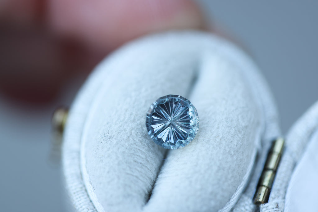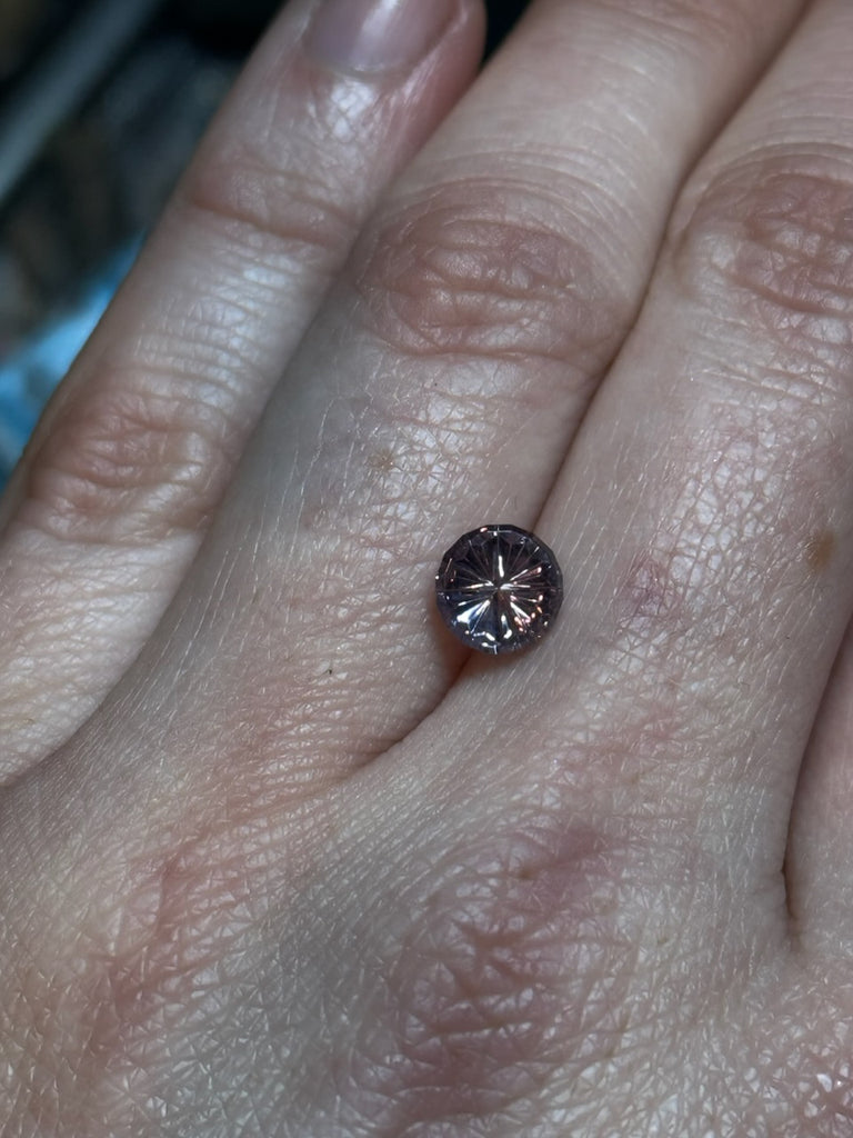 This super special color change round sapphire shifts from a blueish color to purple depending on the lighting! Adding to its magic, its also a custom Starbrite cut by award winning gem cutter John Dyer! Just an absolutely incredible stone!