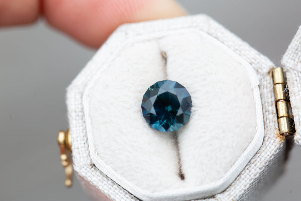 1.98ct round deep teal blue sapphire