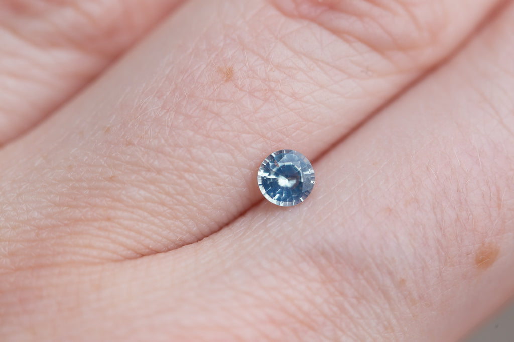 This beautiful icy opalescent blue teal sapphire has tons of facets and is just the loveliest stone!