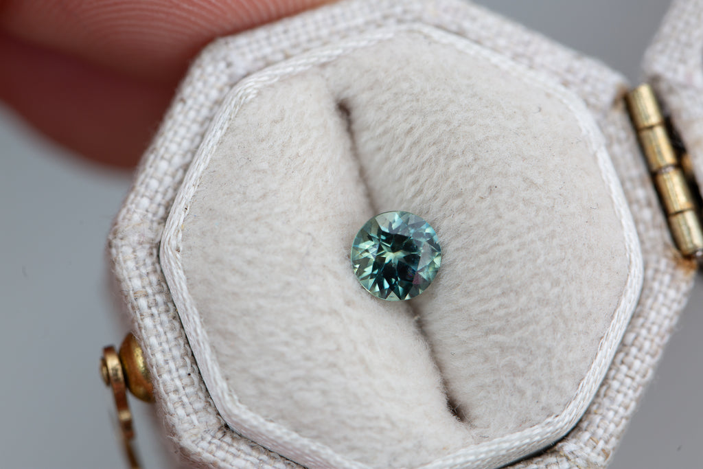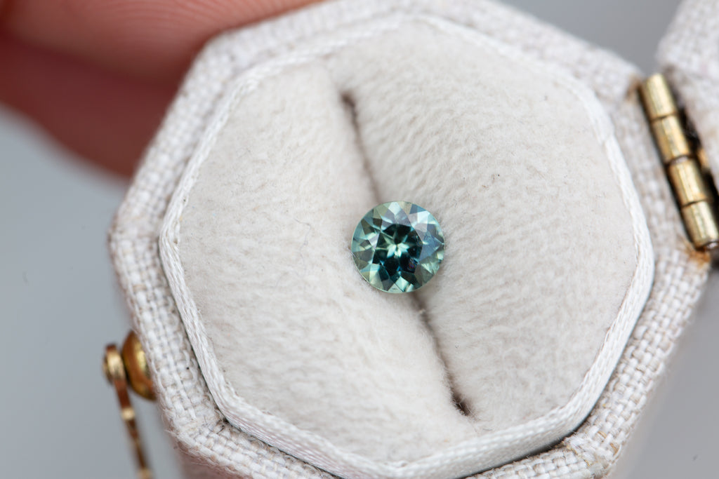 This gorgeous teal blue sapphire has such incredible faceting that give the stone beautiful sparkle and color dimension!