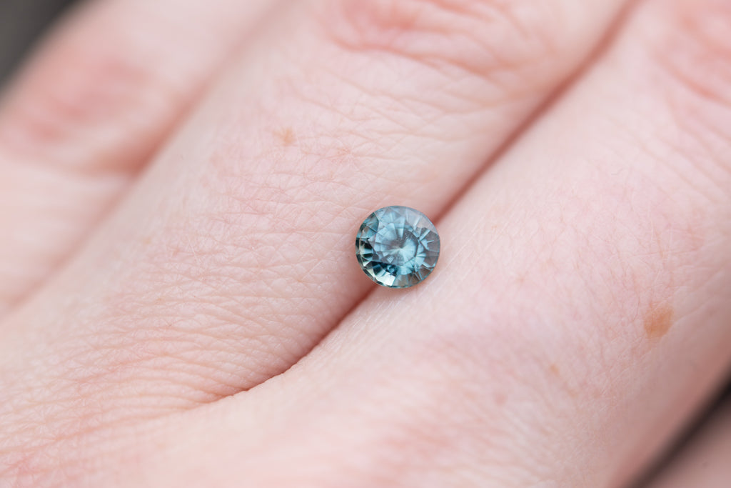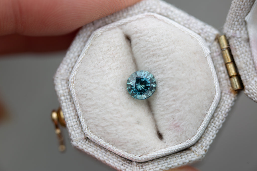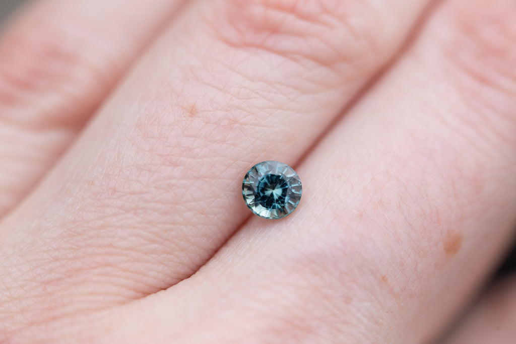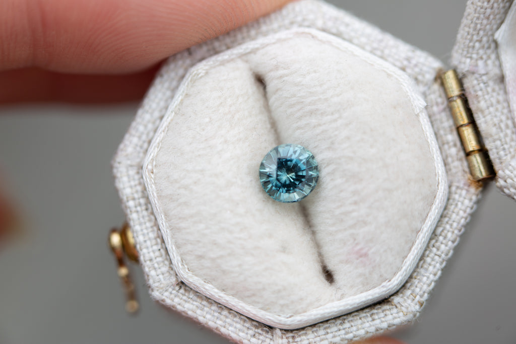 A really pretty blue green sapphire with lots of facets for lots of sparkle