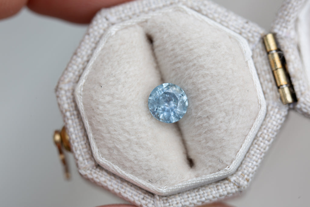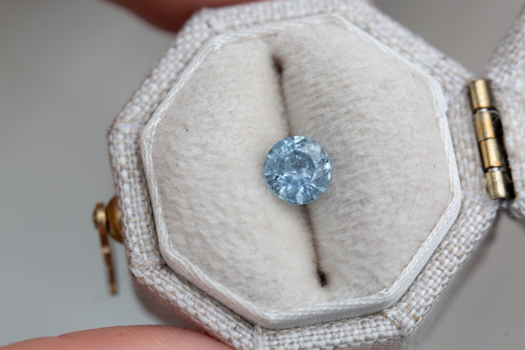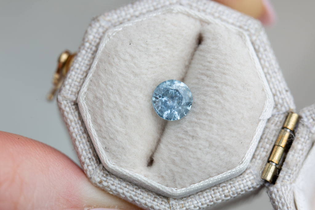 A beautiful medium blue sapphire with unique inclusions and opaqueness add a subtle mystical feel to this stunning stone.