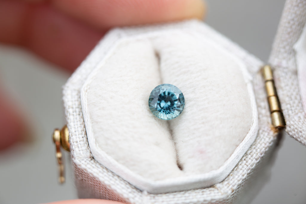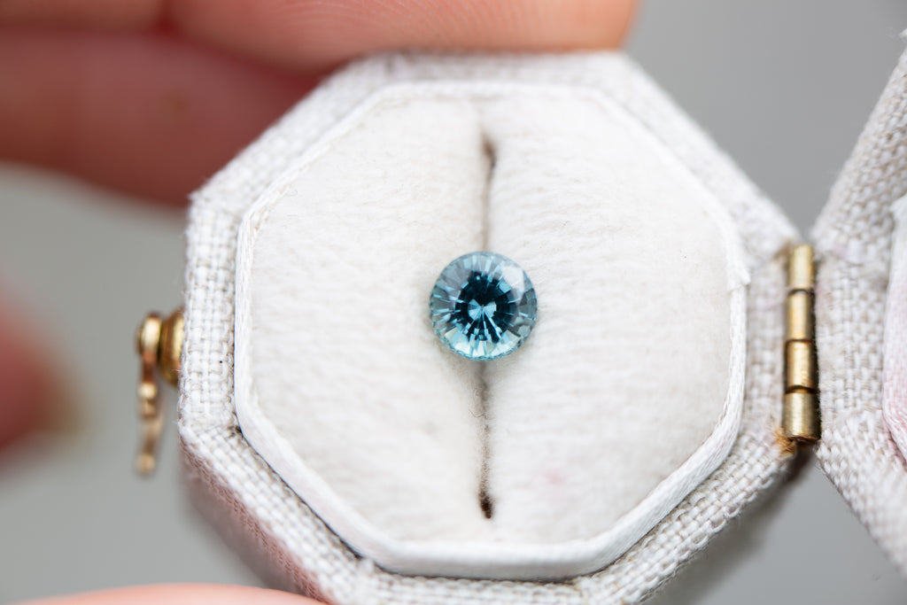 This is a really pretty blue green sapphire with some unique faceting and lots of sparkle!
