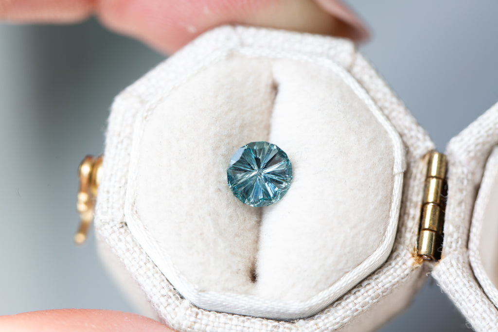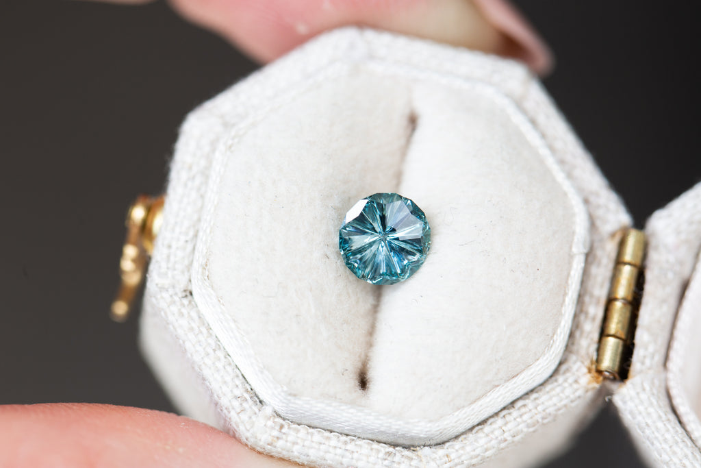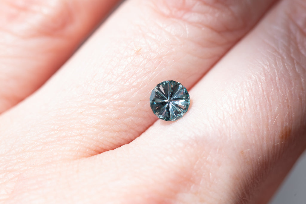 This stunning round teal blue sapphire is Starbrite cut by award winning gem cutter, John Dyer and just an absolutely incredible stone!
