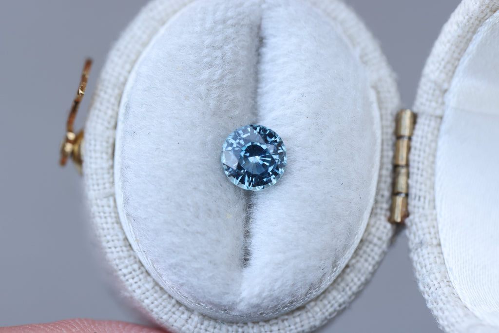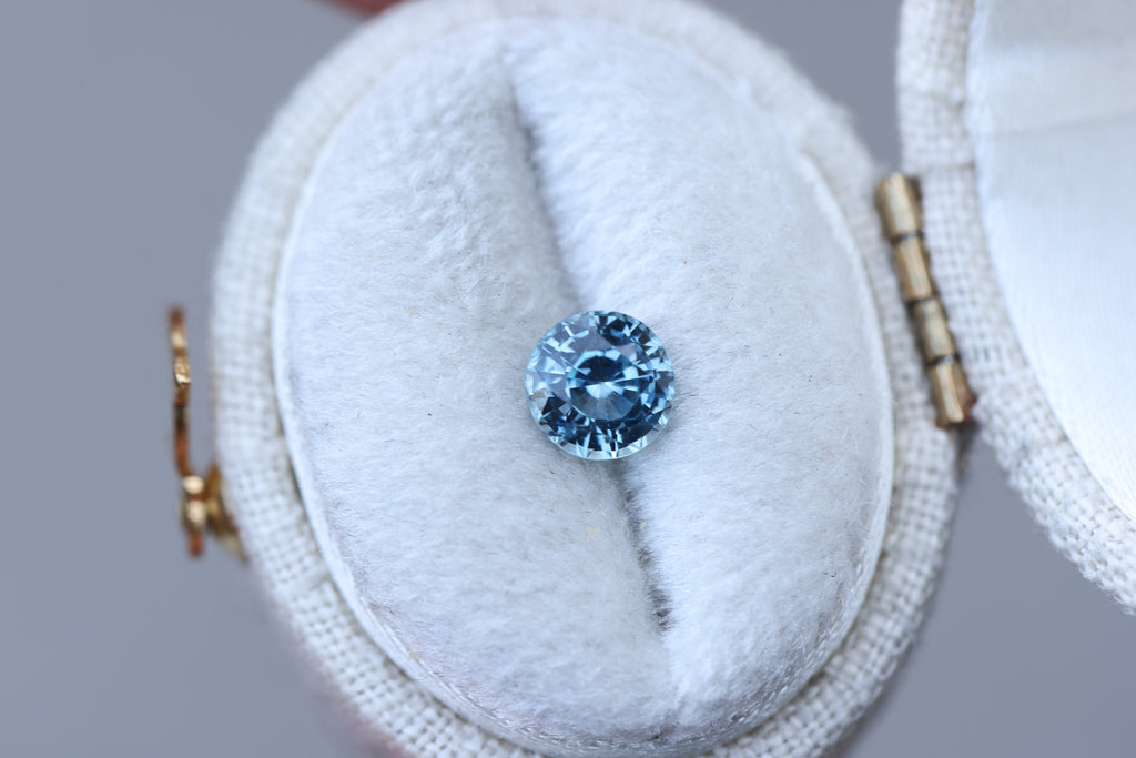 This gorgeous round icy Montana sapphire is the pretties blue!