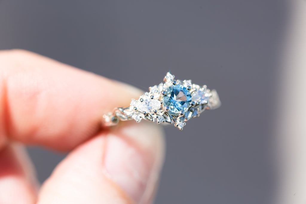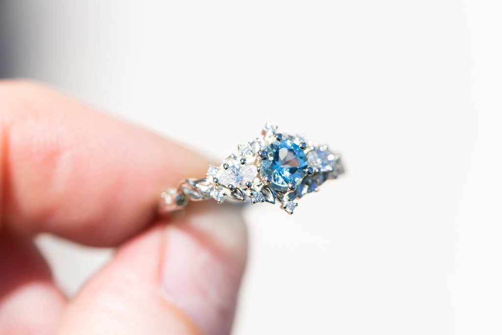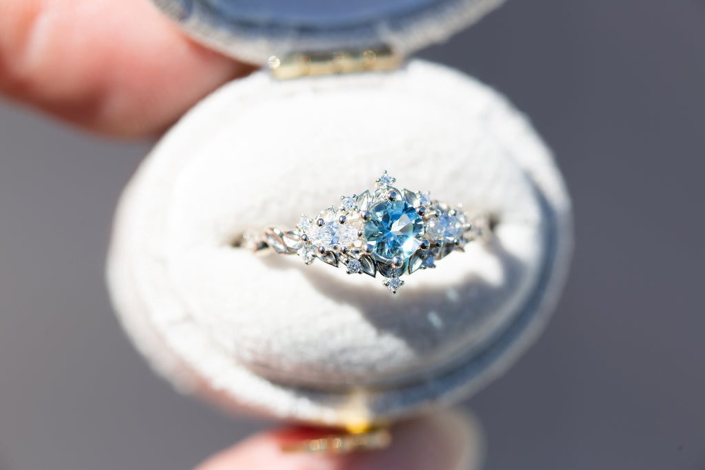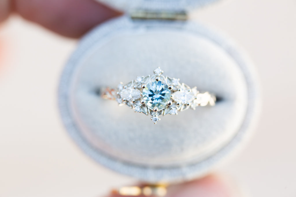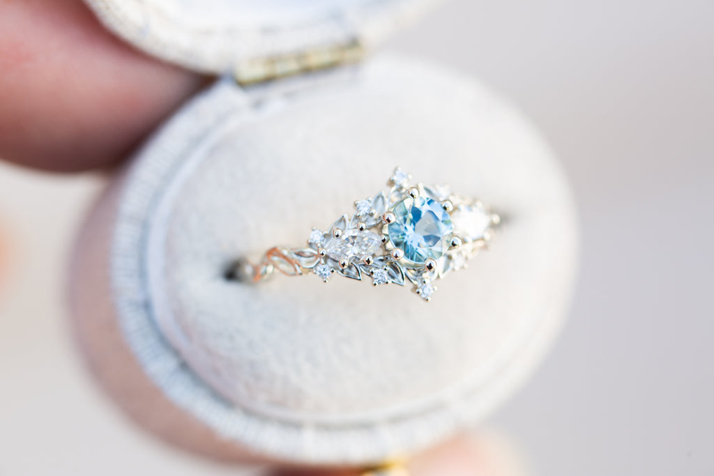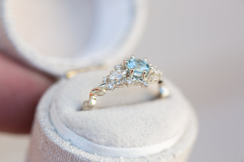 Briar rose three stone with round aquamarine