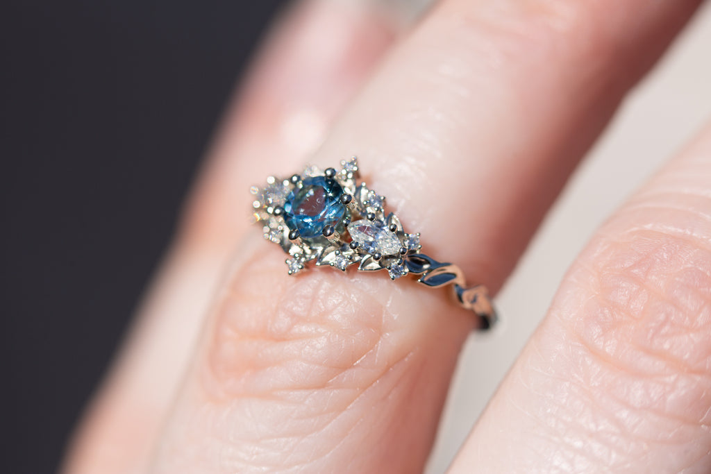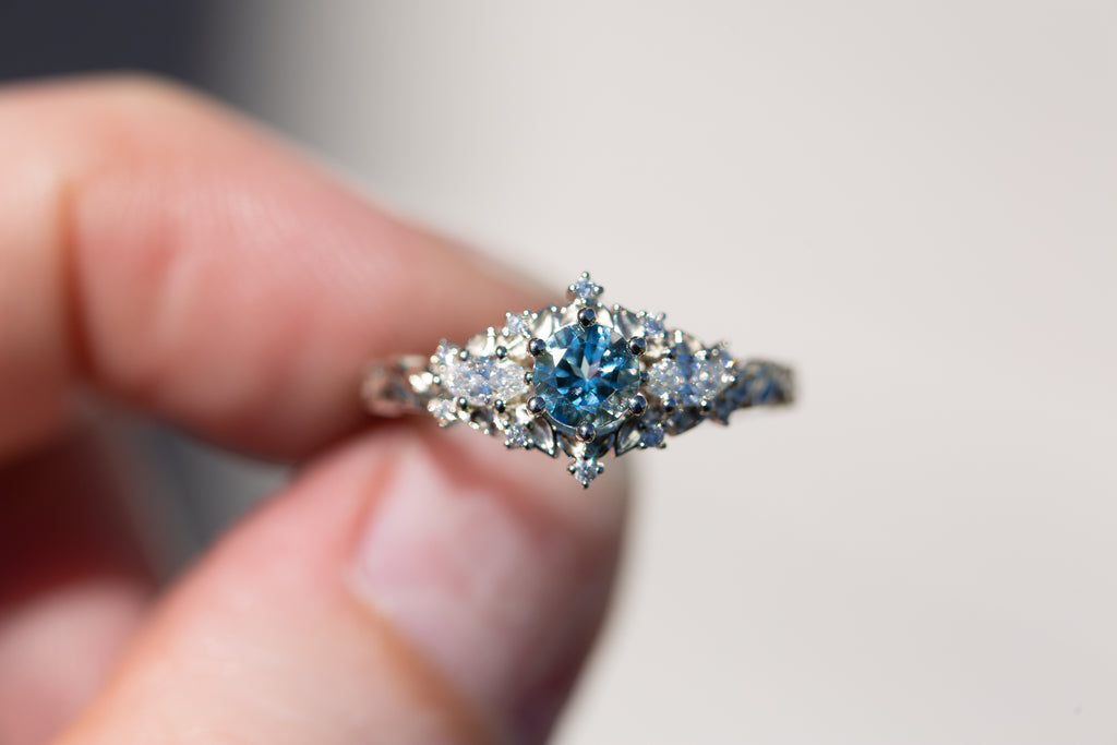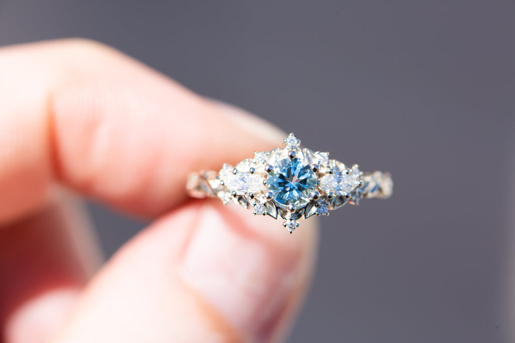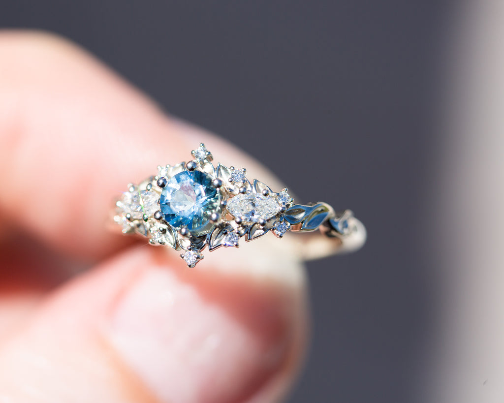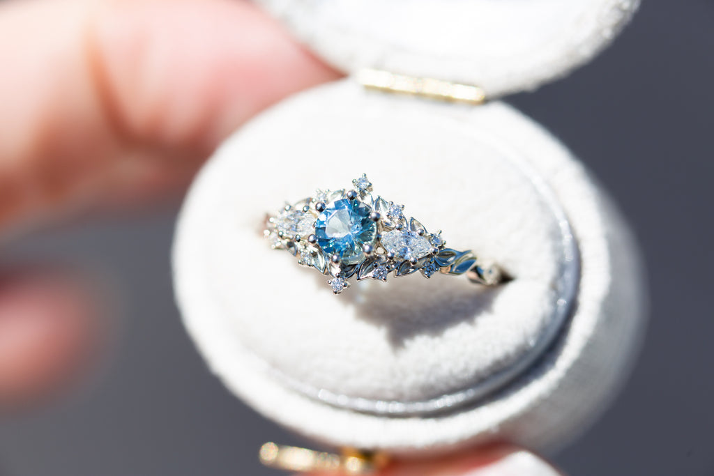 Briar rose three stone with round aquamarine