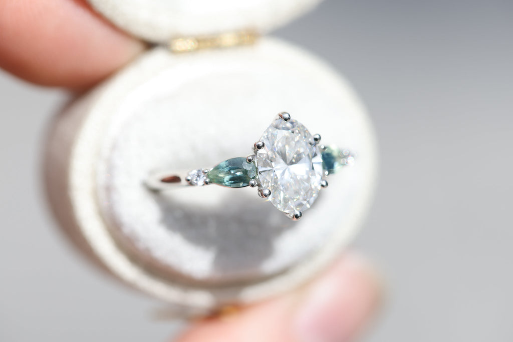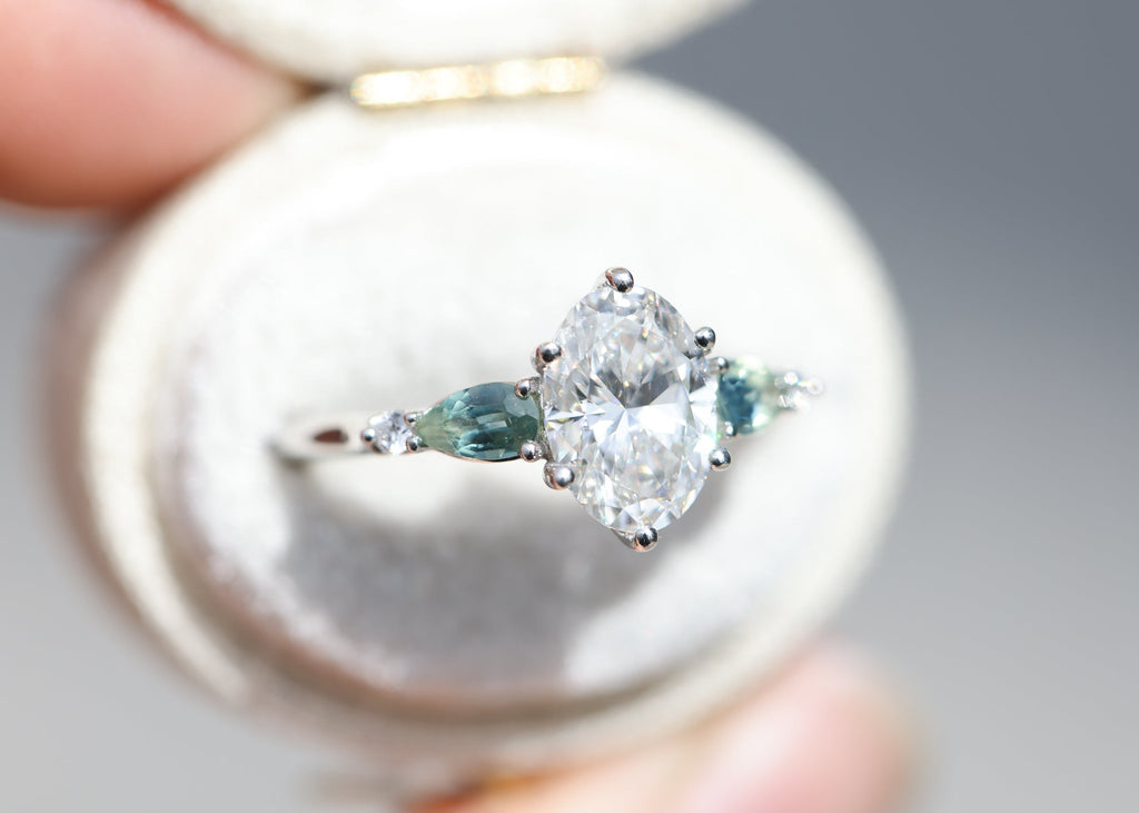 - 5x3mm pear blue teal natural sapphire side stones
