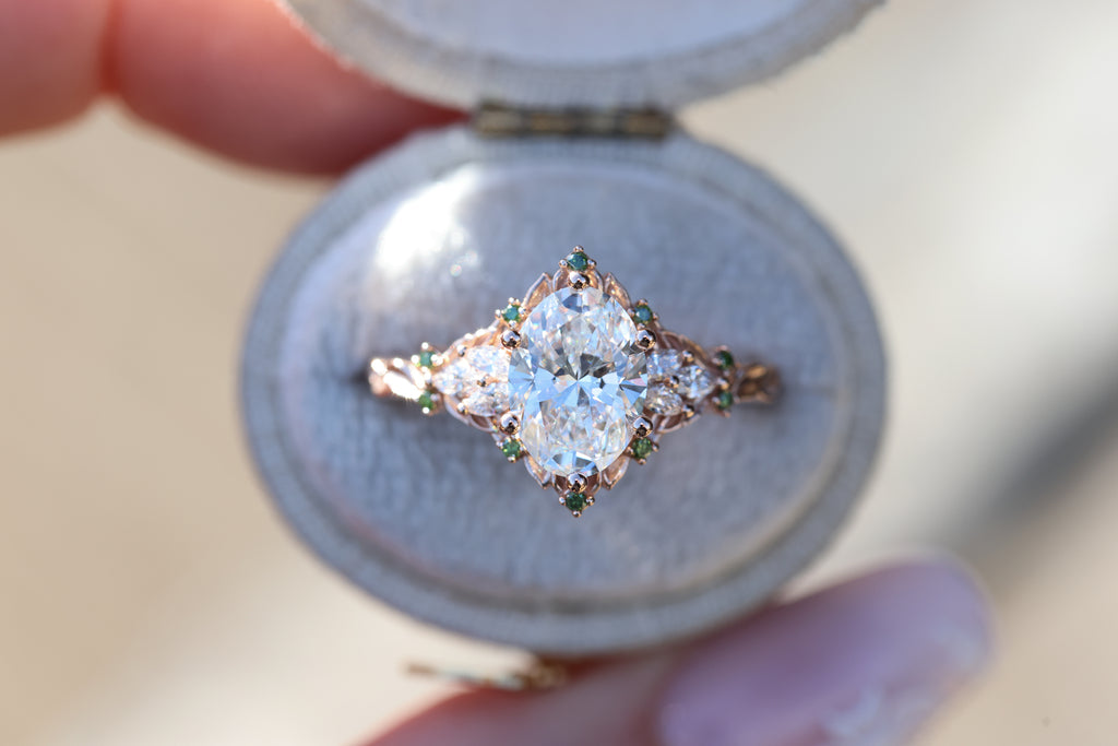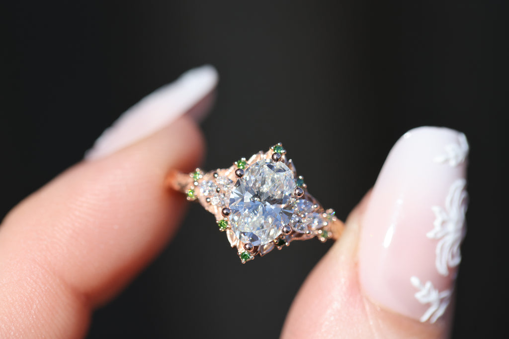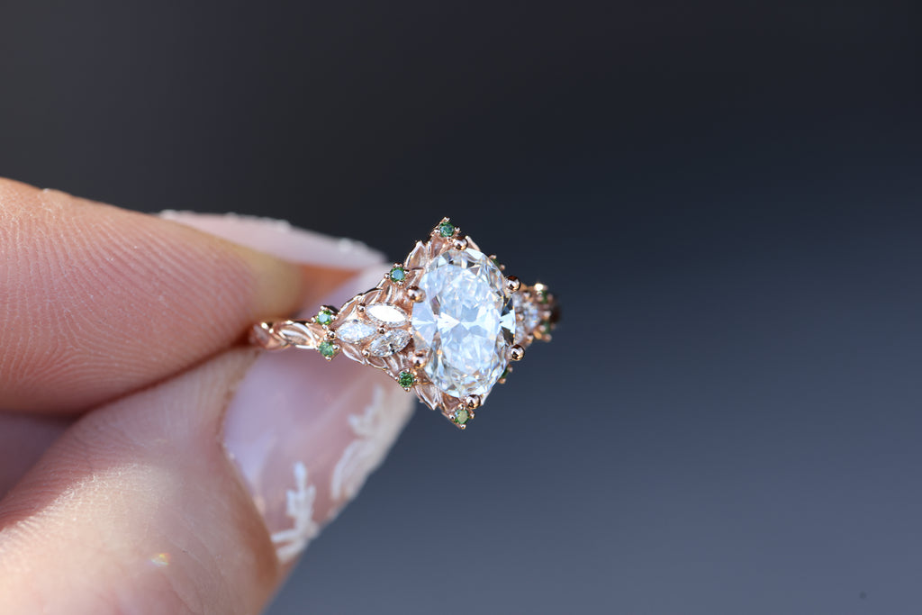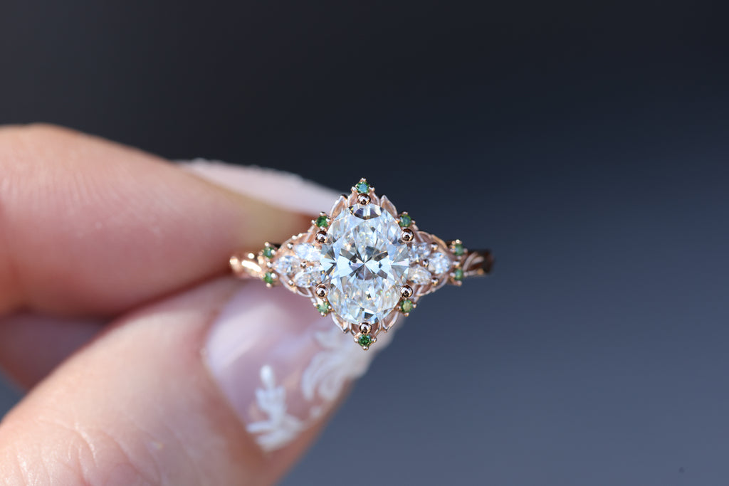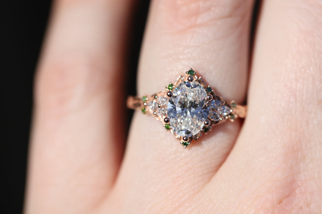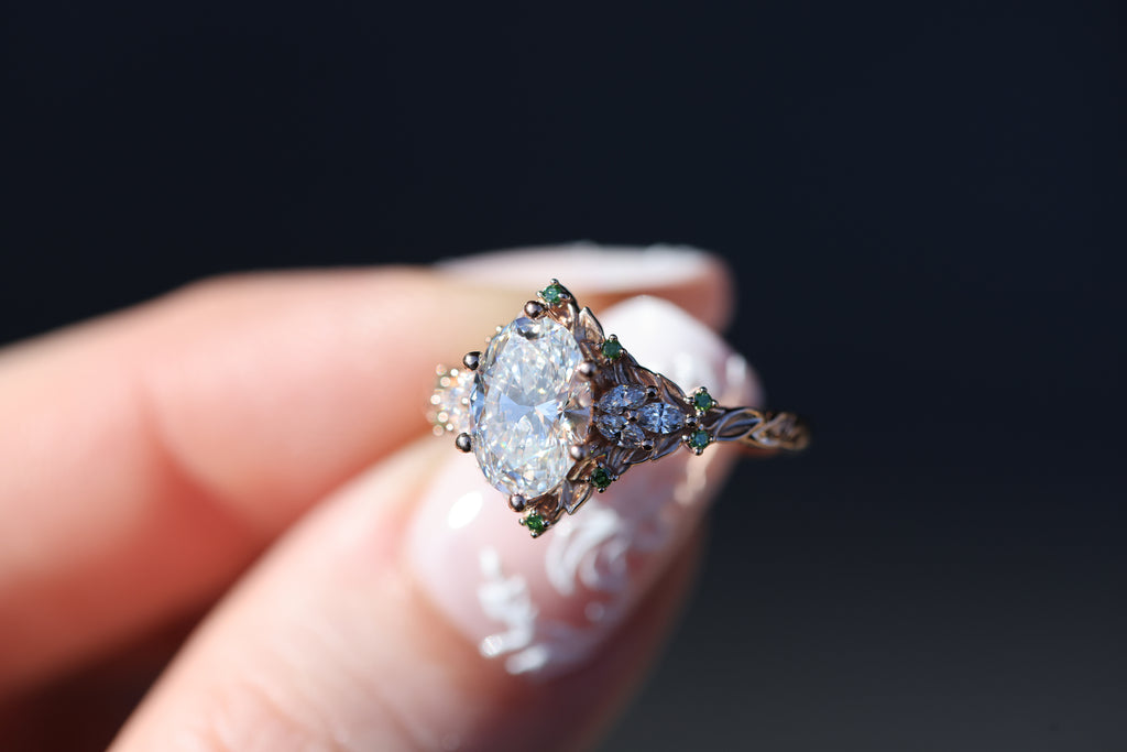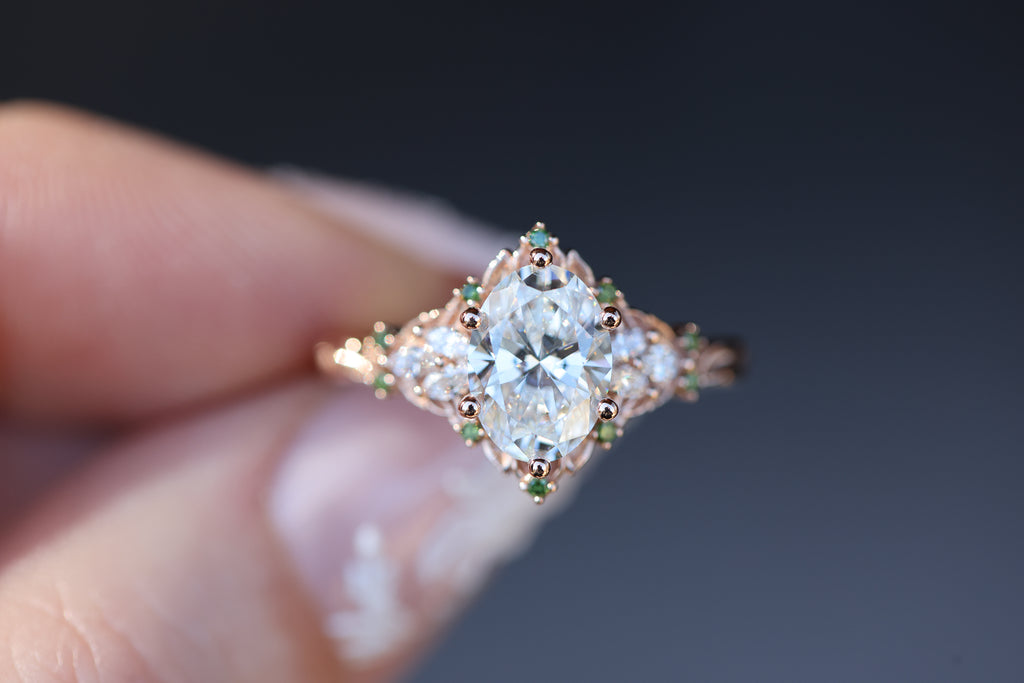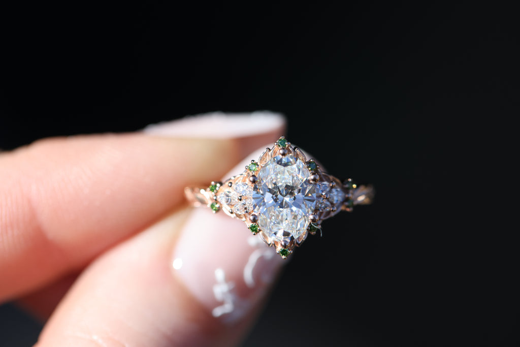1.65ct oval lab diamond center (I will select each diamond DEF, VVS2+ around 9.4x6.8mm but can vary slightly since each diamond is unique)