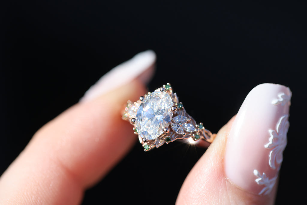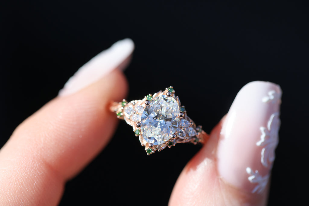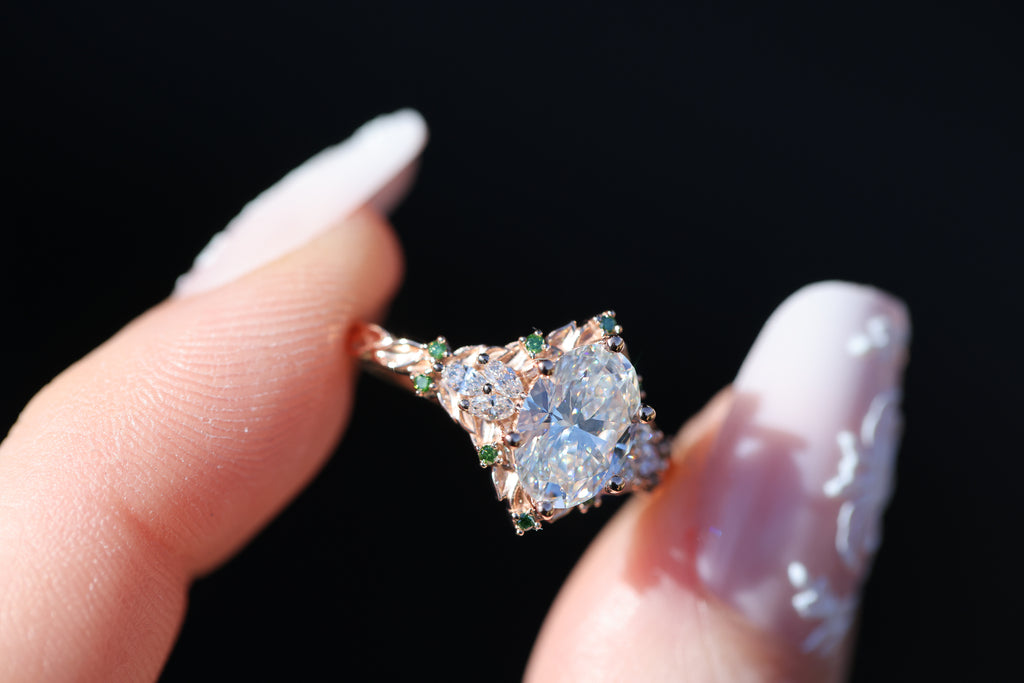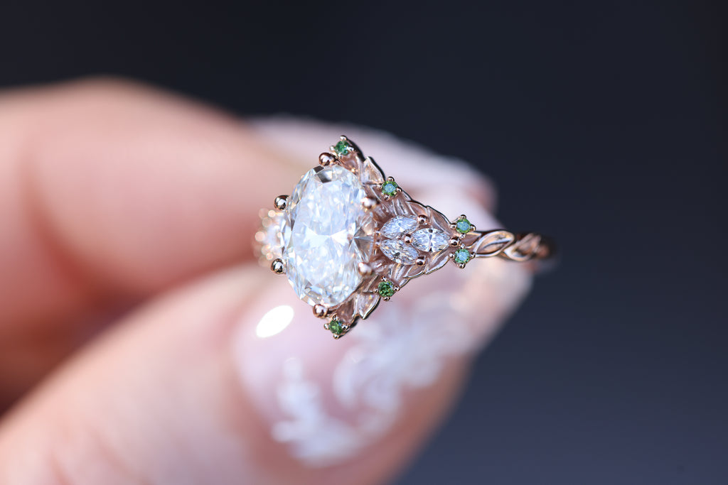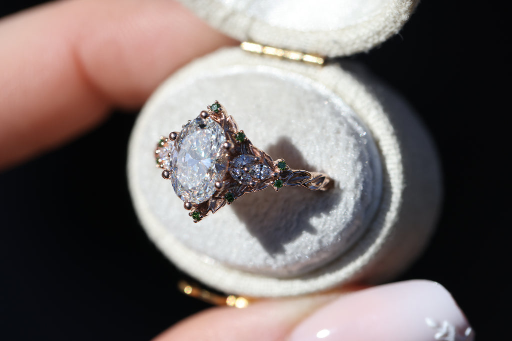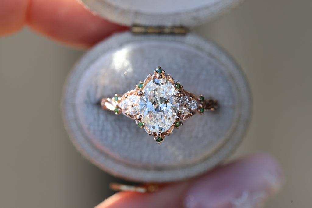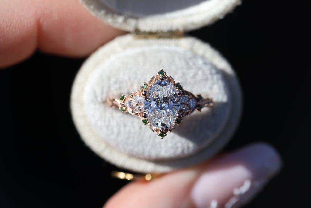 1.65ct oval lab diamond center (I will select each diamond DEF, VVS2+ around 9.4x6.8mm but can vary slightly since each diamond is unique)