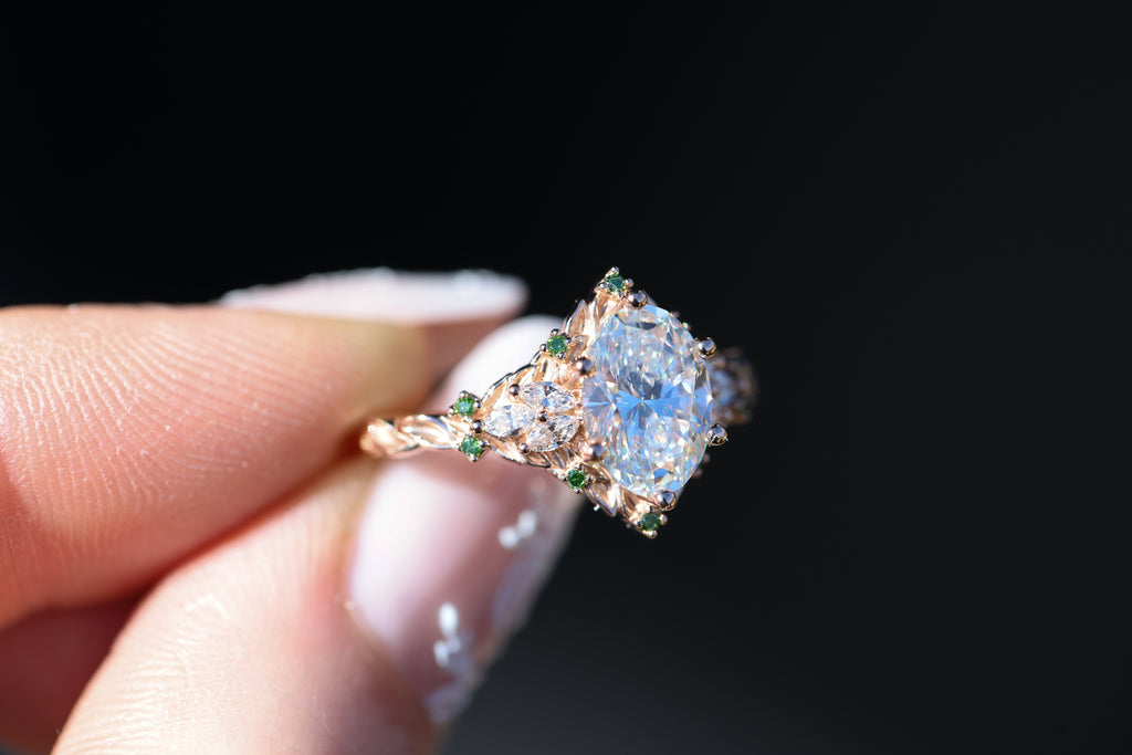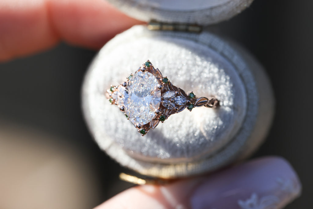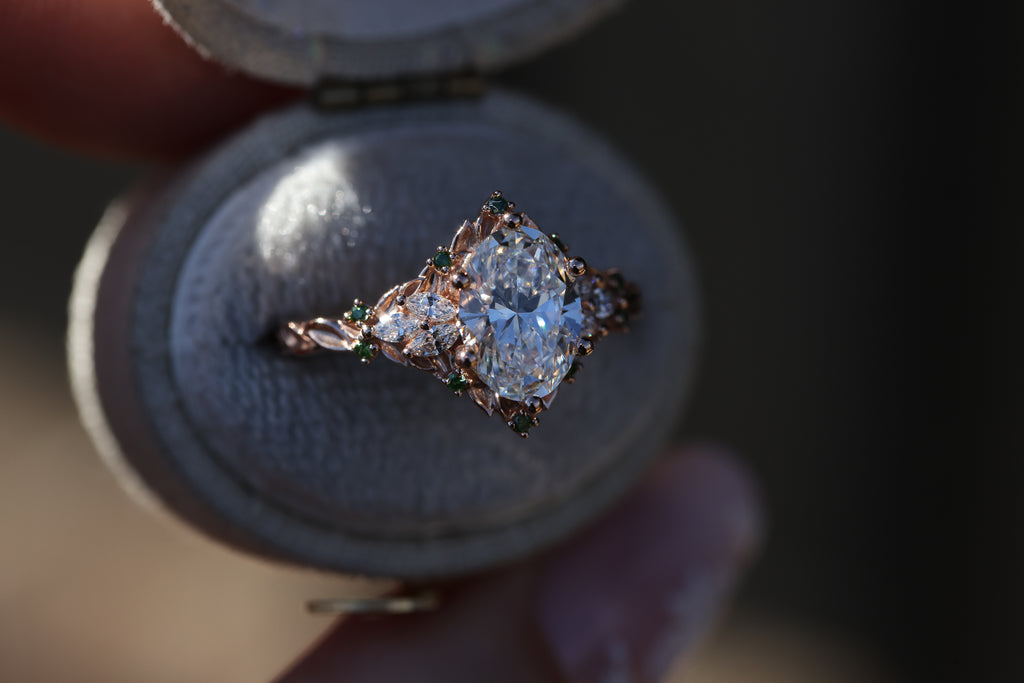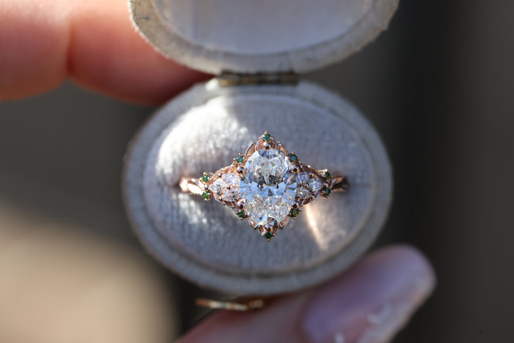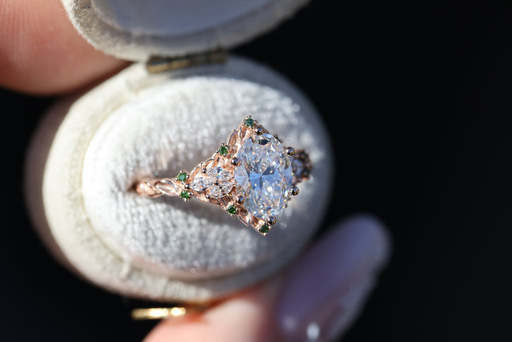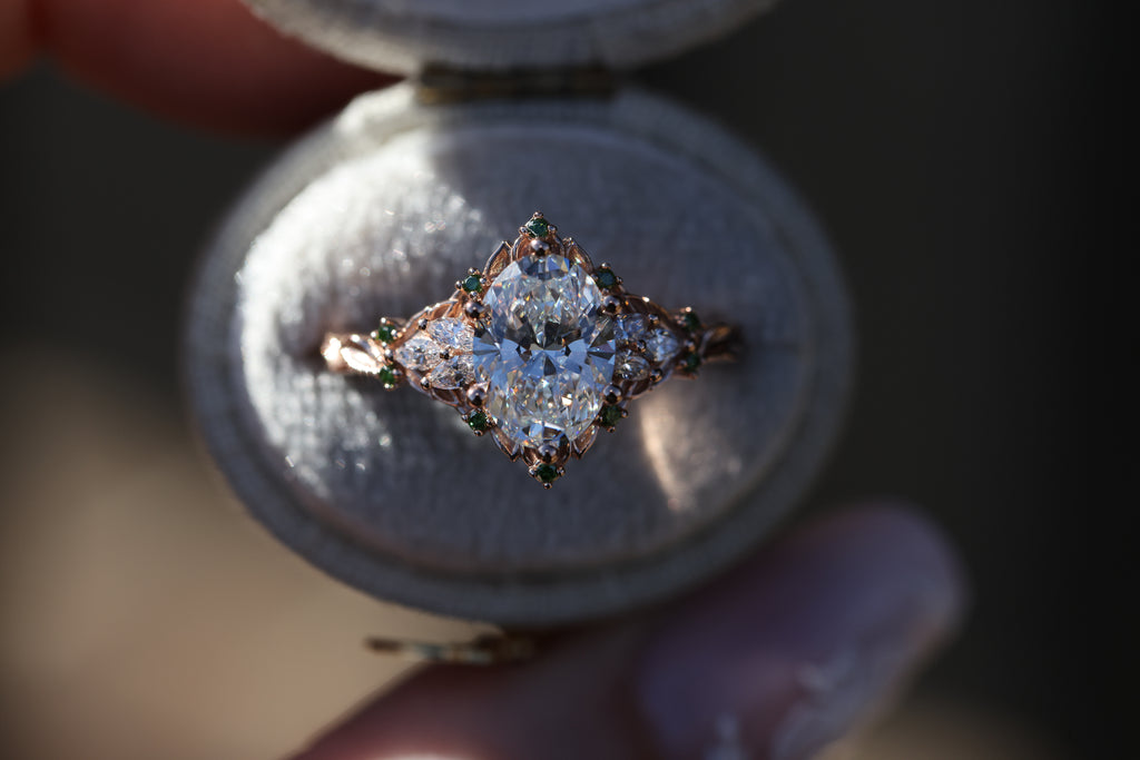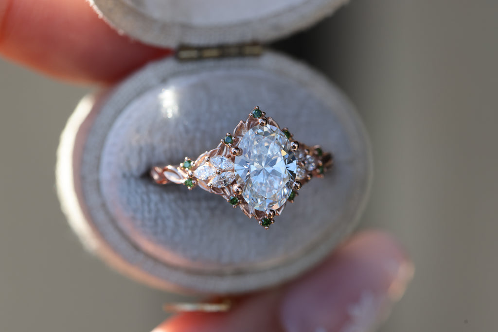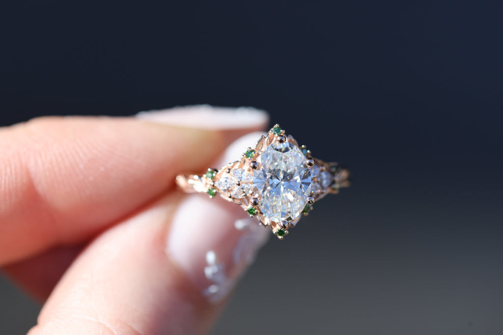 1.65ct oval lab diamond center (I will select each diamond DEF, VVS2+ around 9.4x6.8mm but can vary slightly since each diamond is unique)