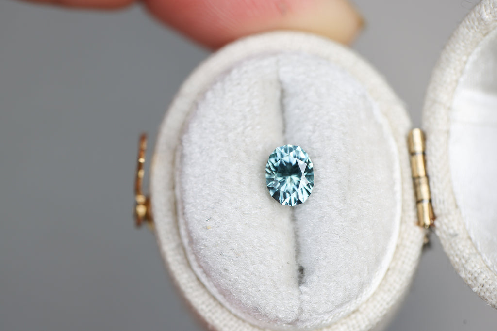 This gorgeous oval sapphire is such a stunning blue teal with incredible faceting!