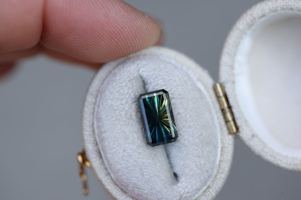 2.85ct rectangle parti sapphire - Starbrite cut by John Dyer