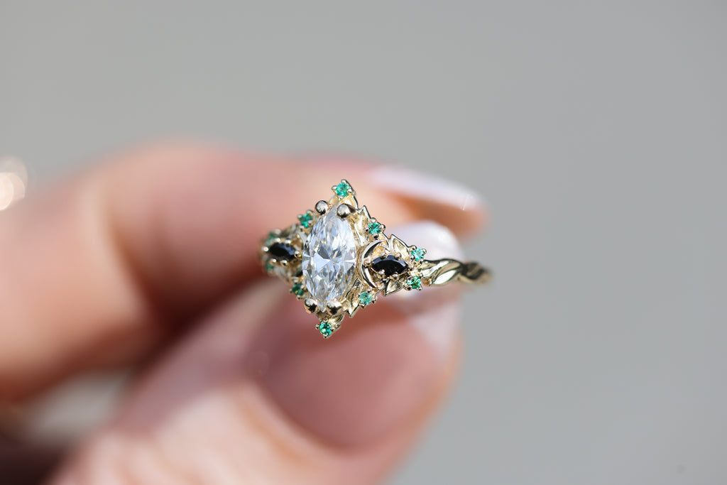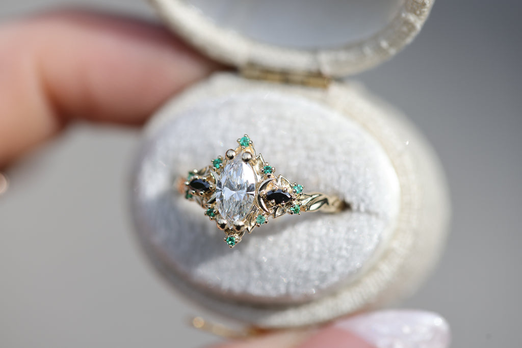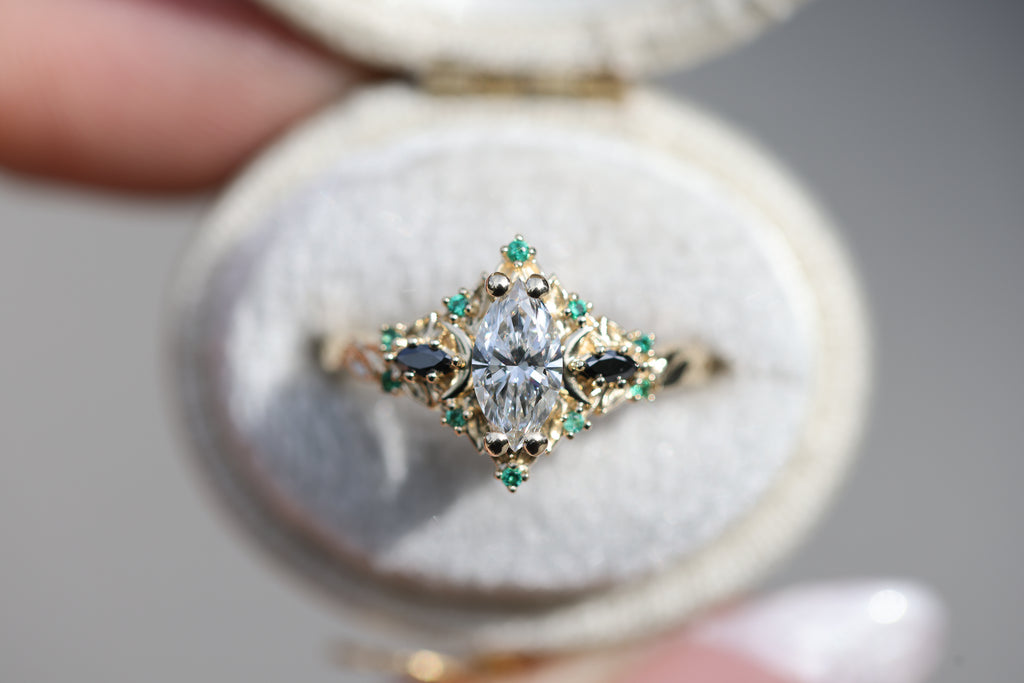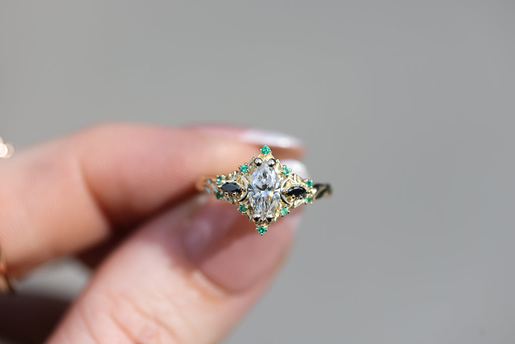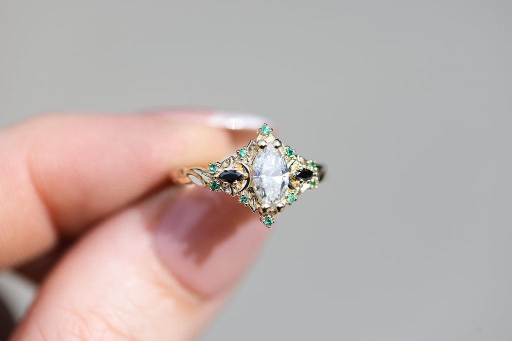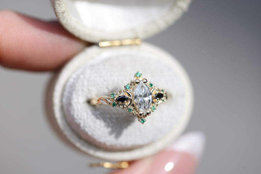 Briar Moon Three Stone with Lab Diamond and Black Diamonds