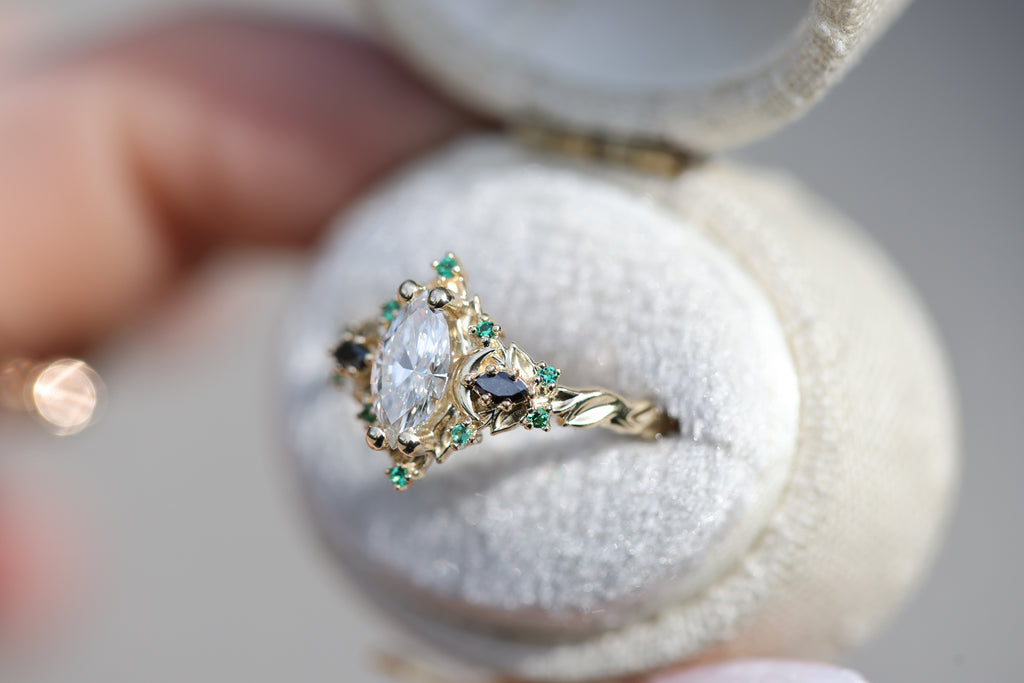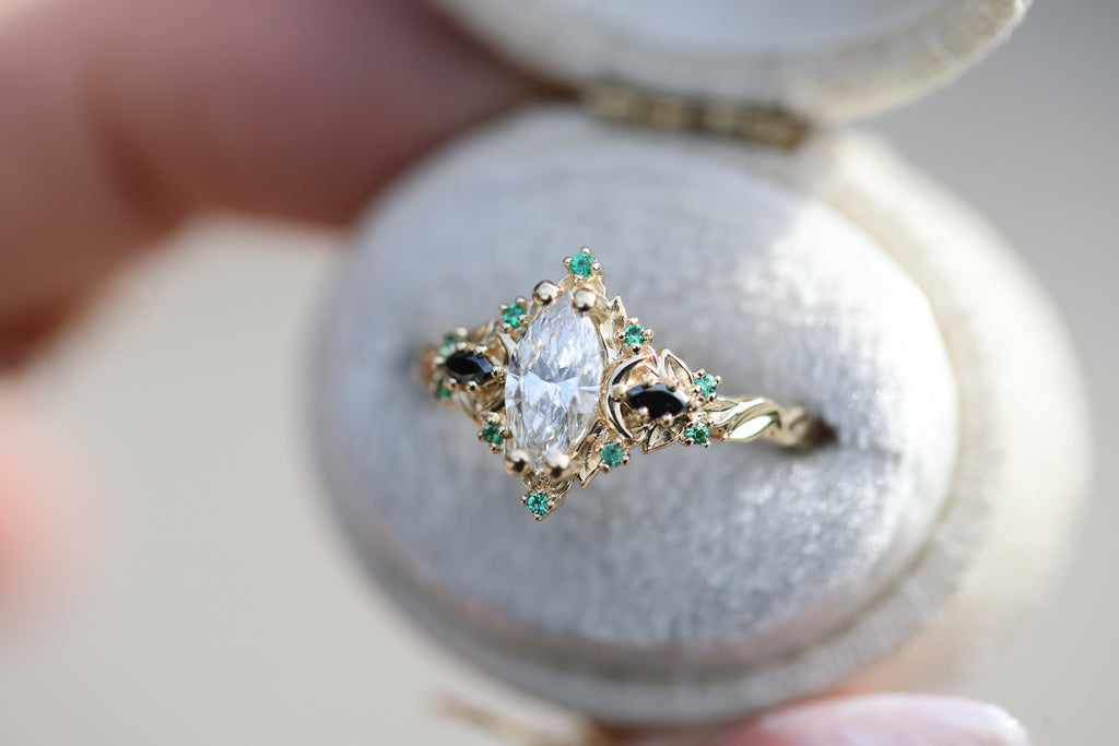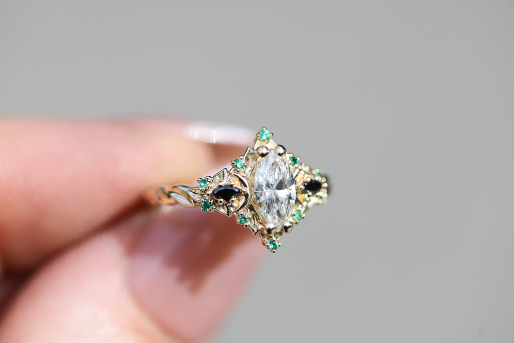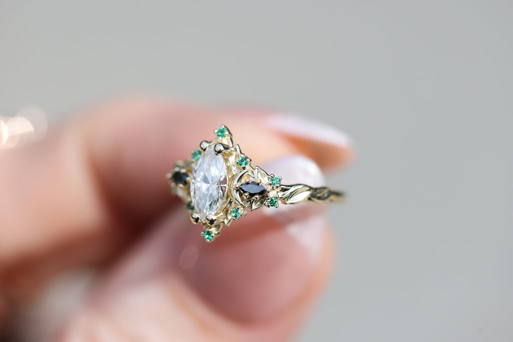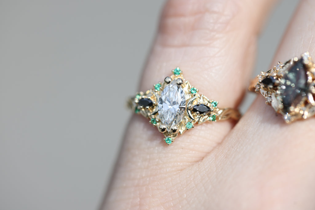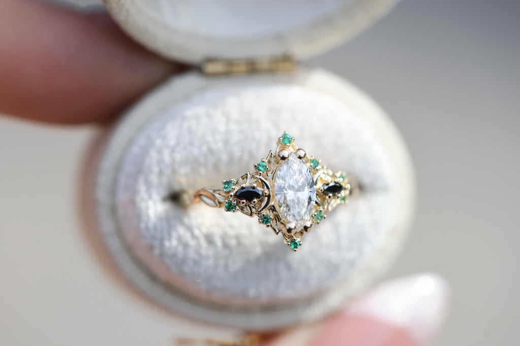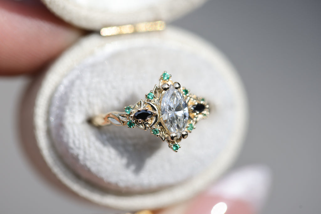 Briar Moon Three Stone with Lab Diamond and Black Diamonds
