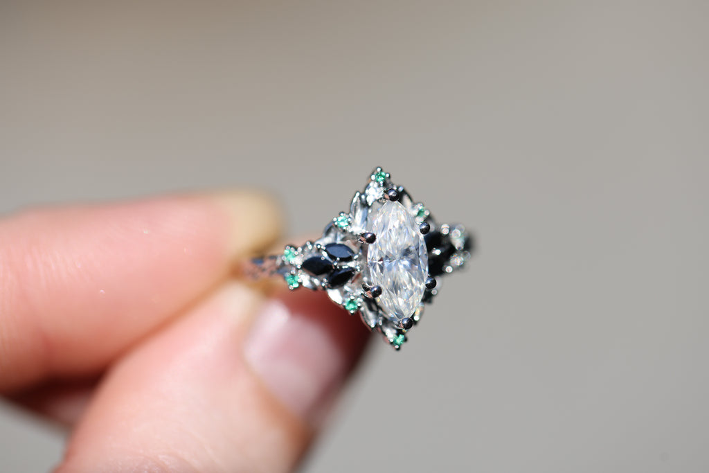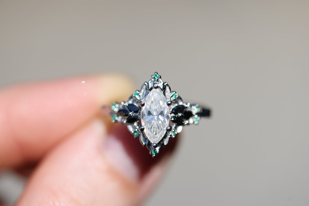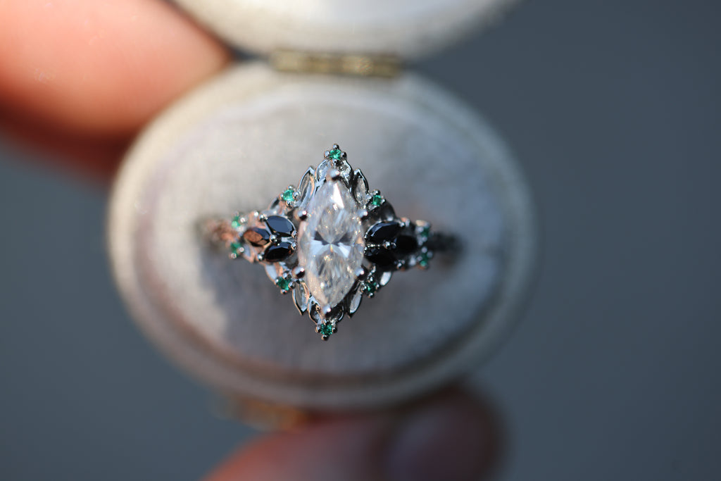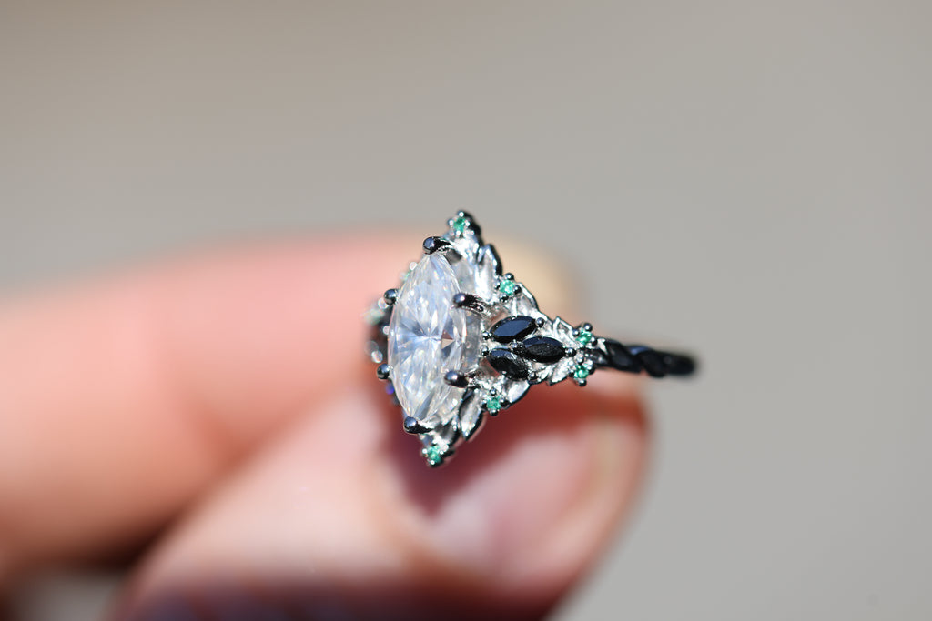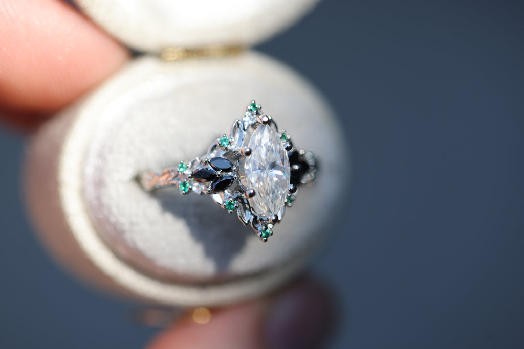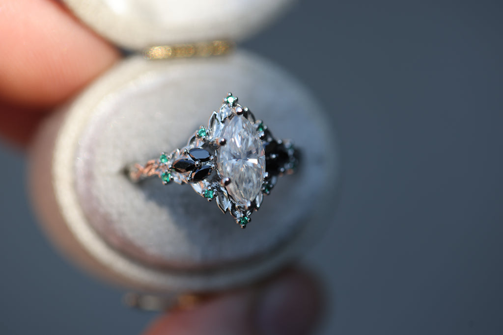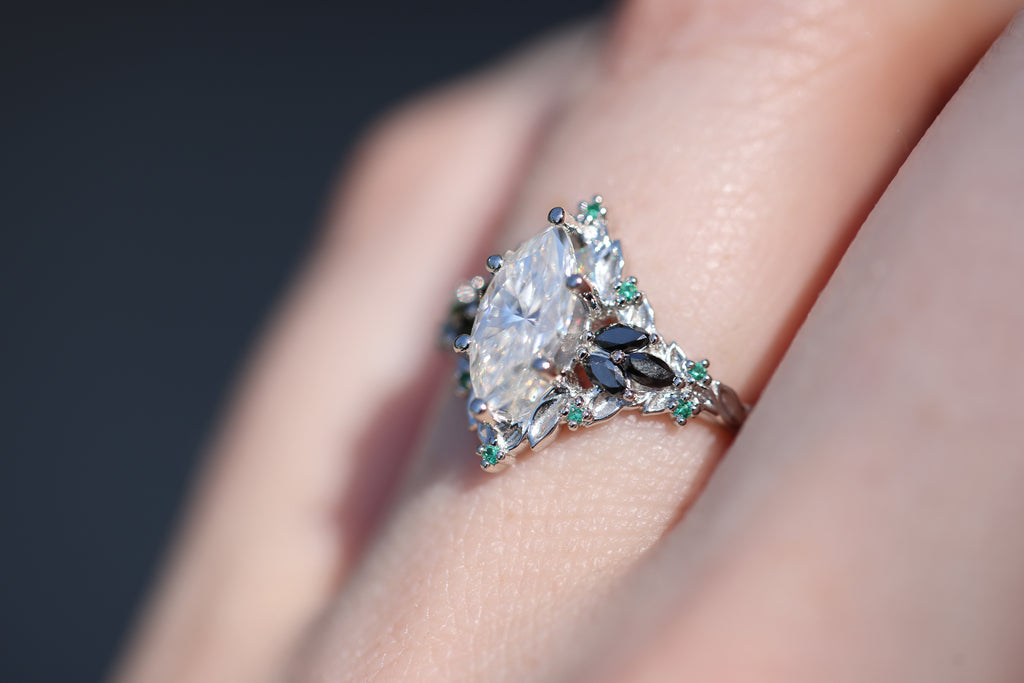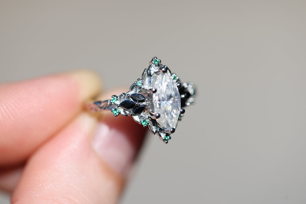 Briar Rose Starlight with 10x5mm Marquise Moissanite and Emerald Accents