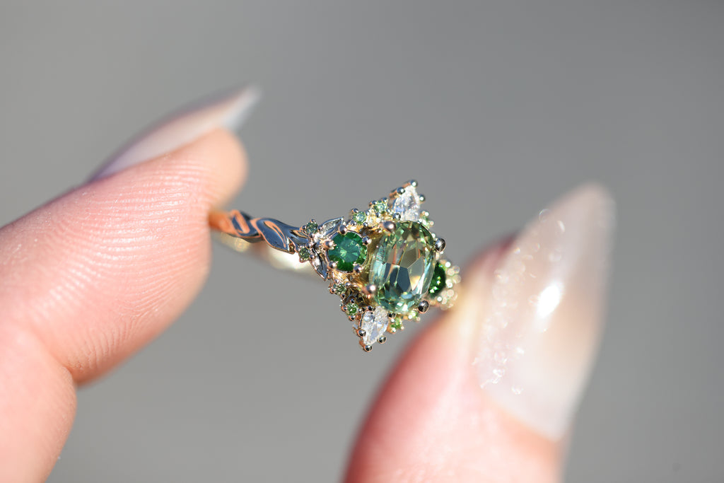 Enchanted Briar with lab green sapphire and green diamonds