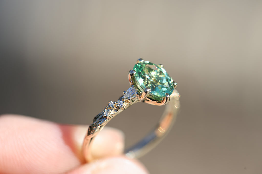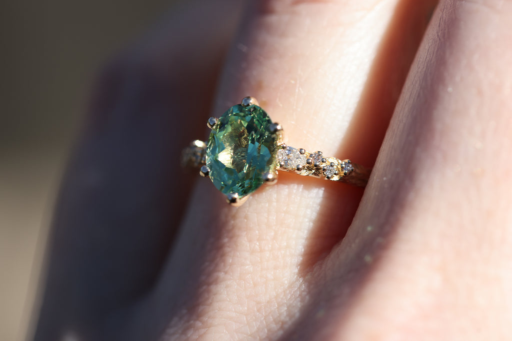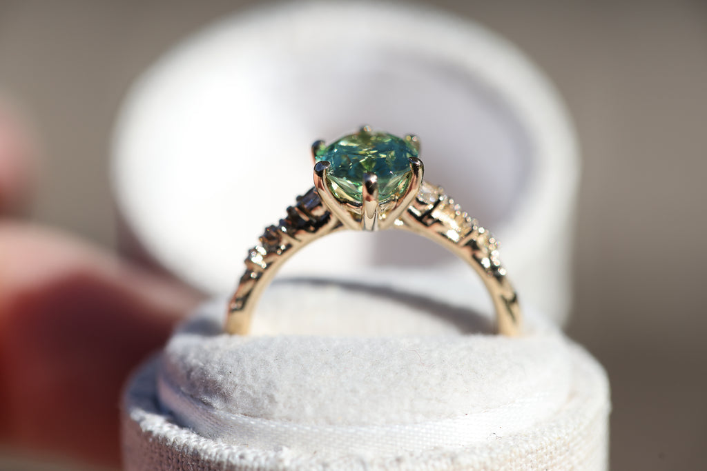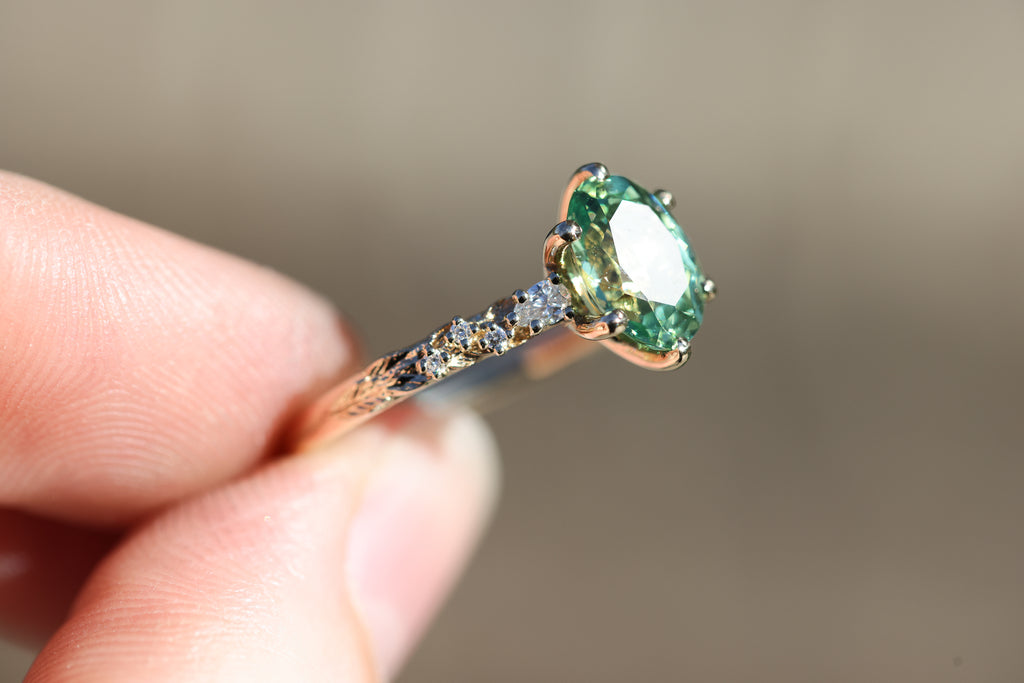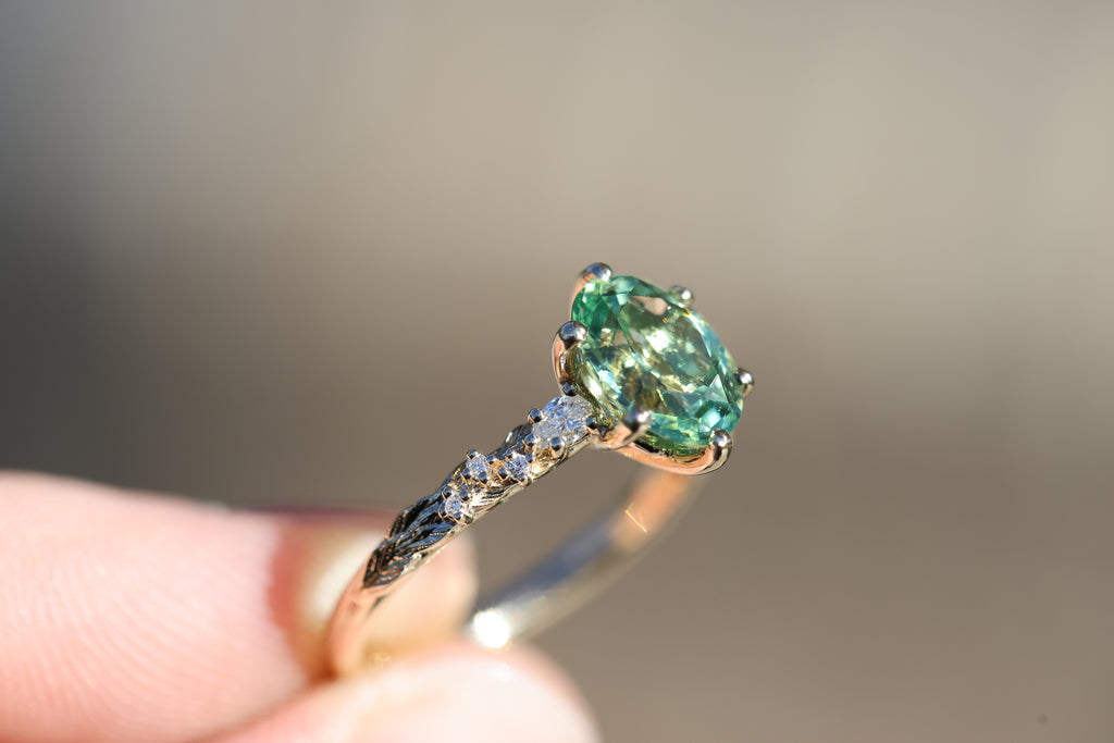 Rowan three stone with lab green sapphire