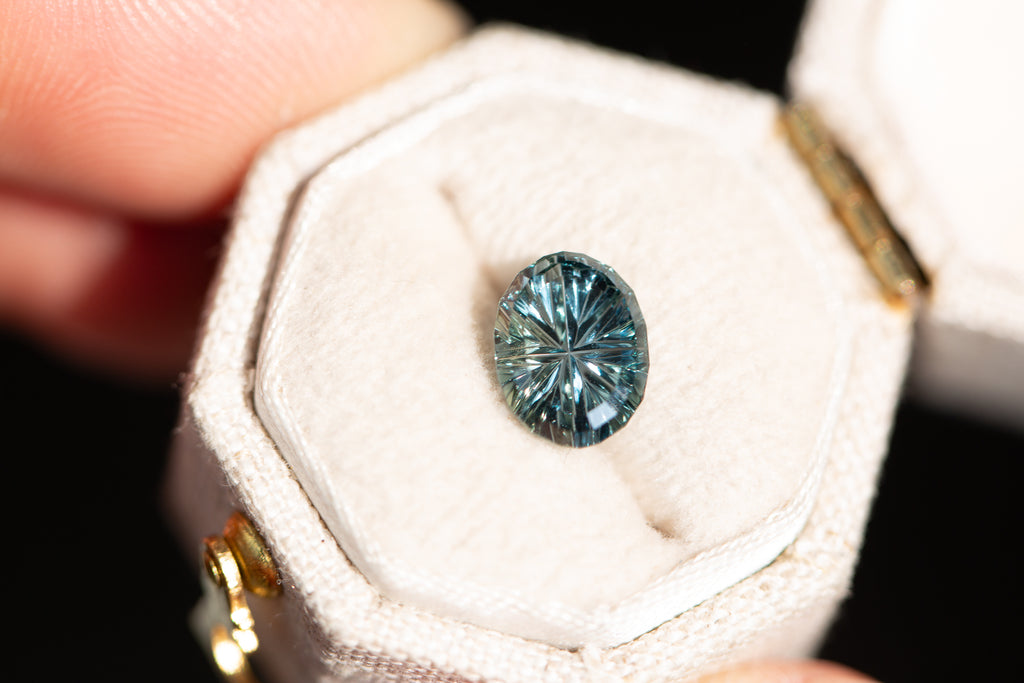 1.99ct blue green Starbrite sapphire cut by John Dyer