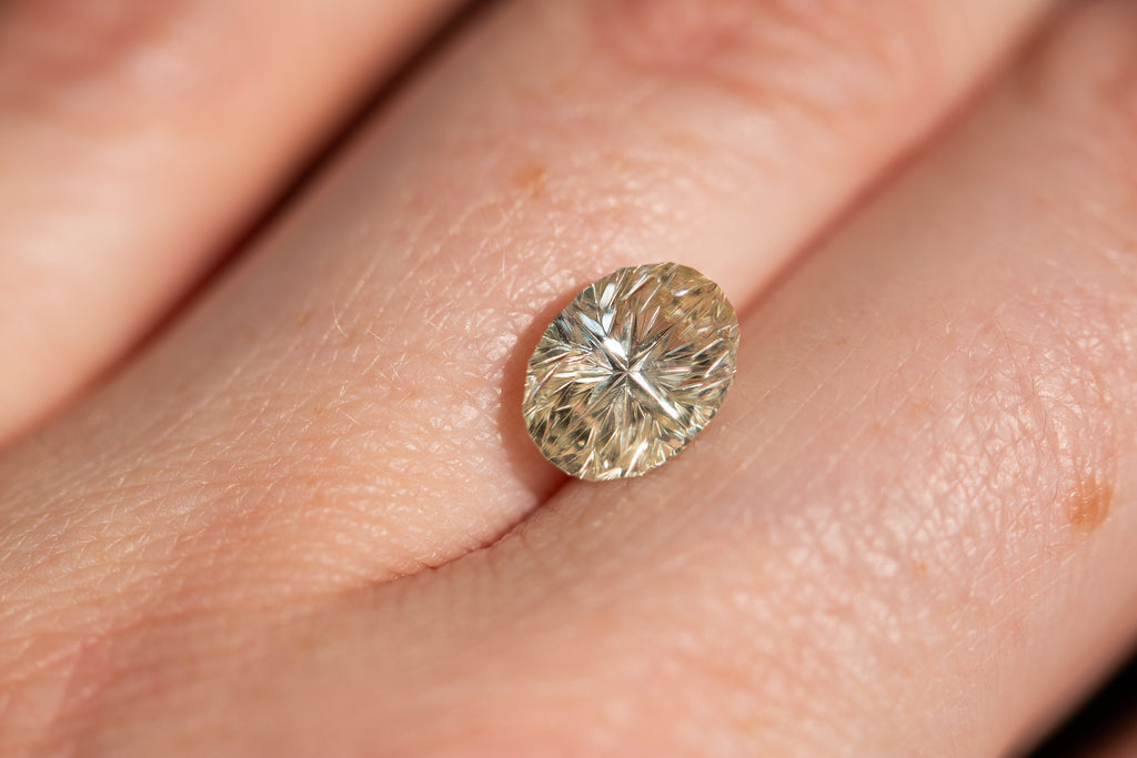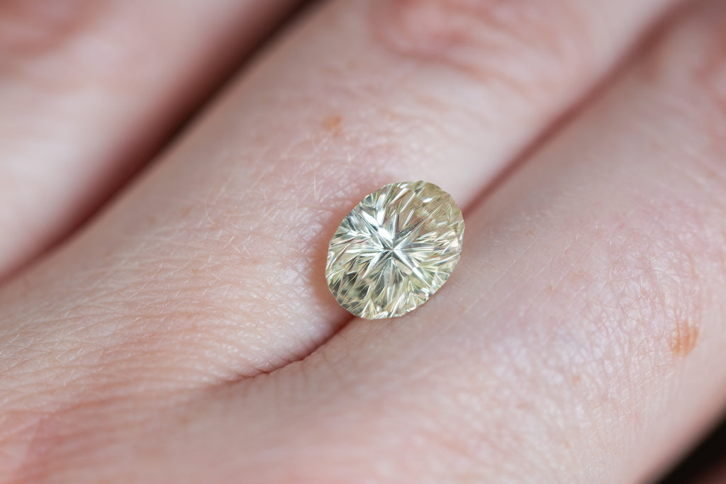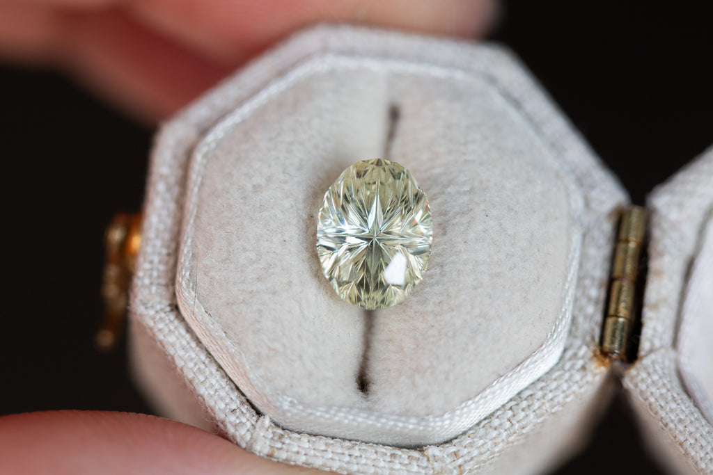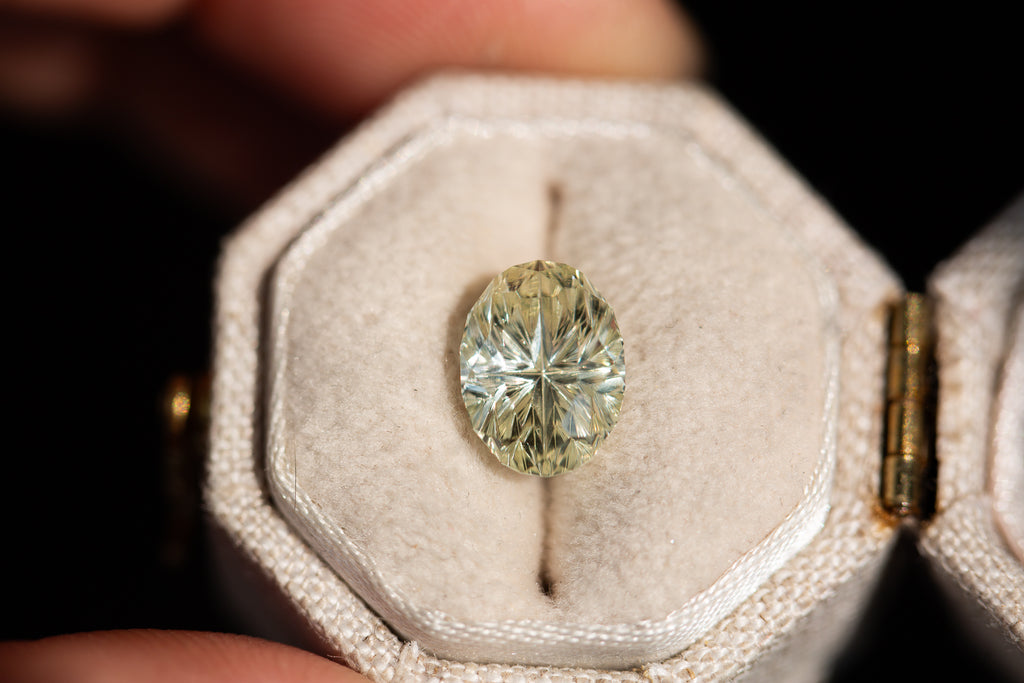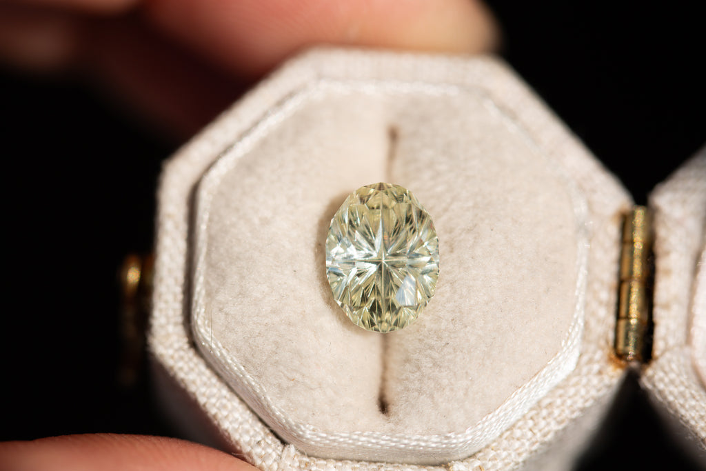 ON HOLD 3.31ct oval light green yellow Starbrite sapphire from John Dyer
