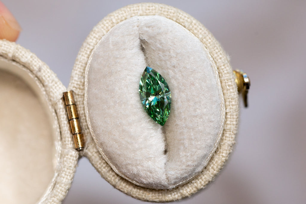 0.91ct Marquise Fancy Vivid Green Lab Diamond, VVS2