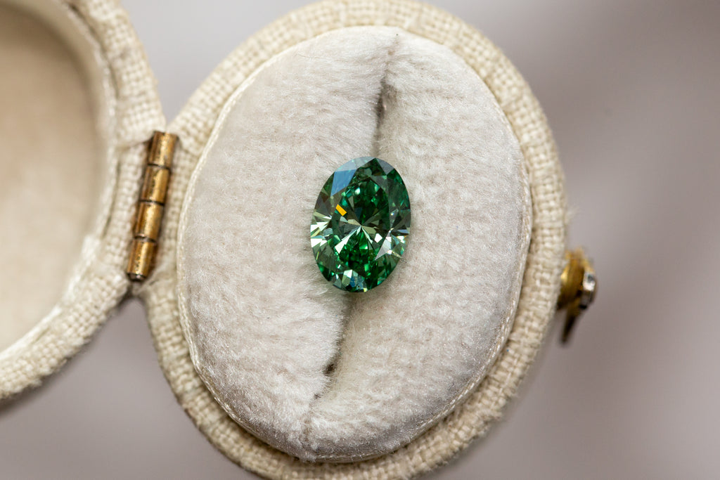 1.50ct Oval Fancy Vivid Green Lab Diamond, VS2