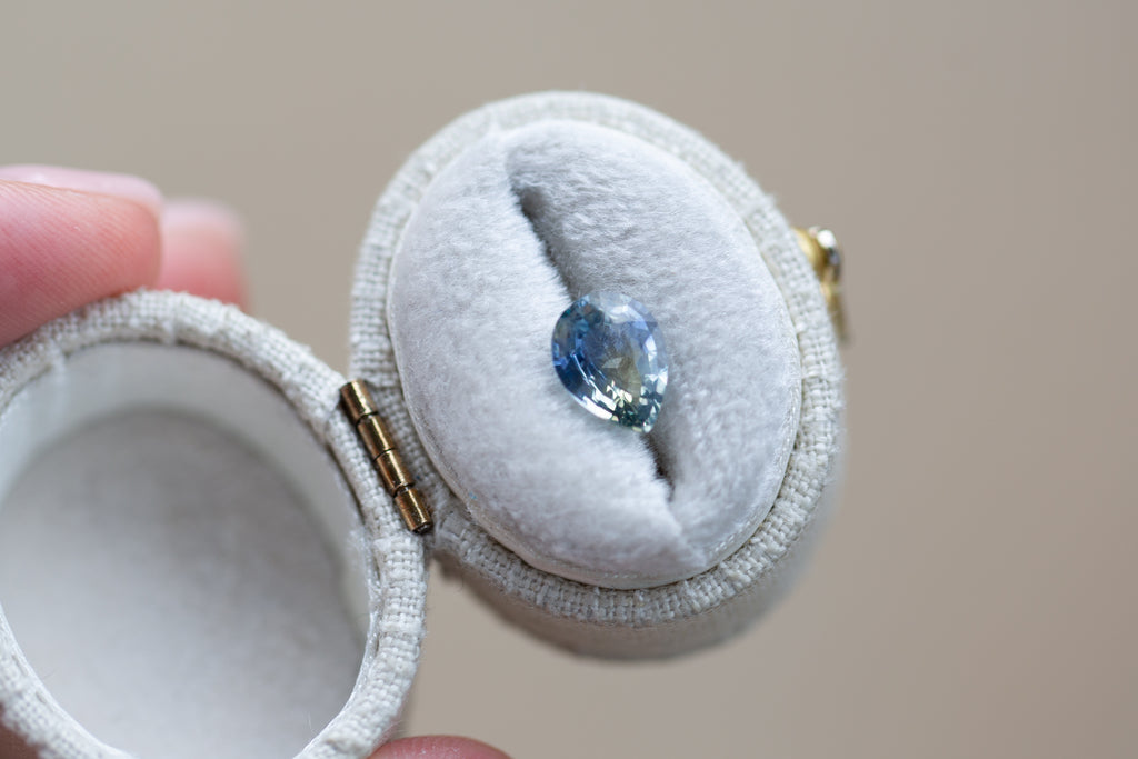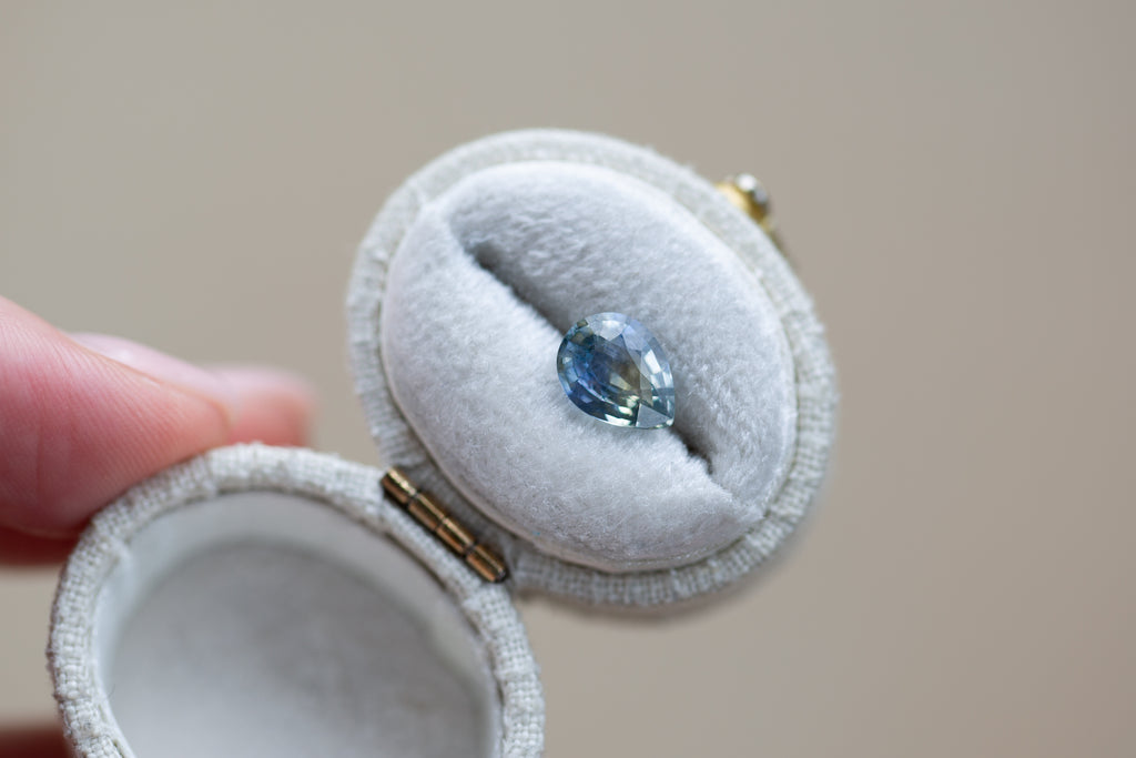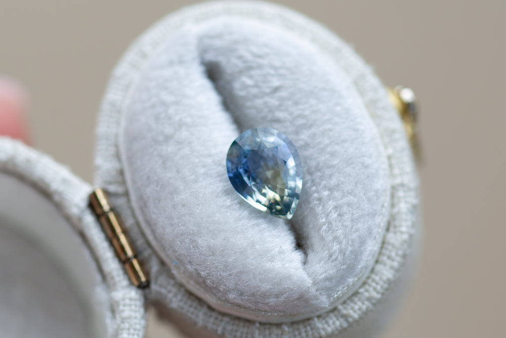 This is the most magical blue and yellow sapphire! It has a lovely softer color combination!