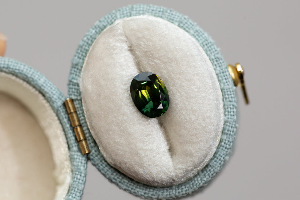 1.62ct Oval Teal and Yellowish Green Sapphire