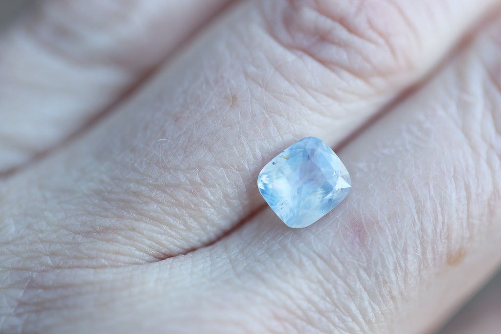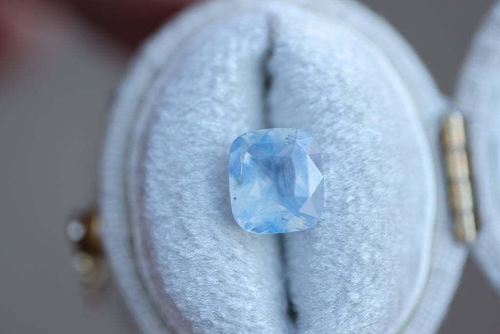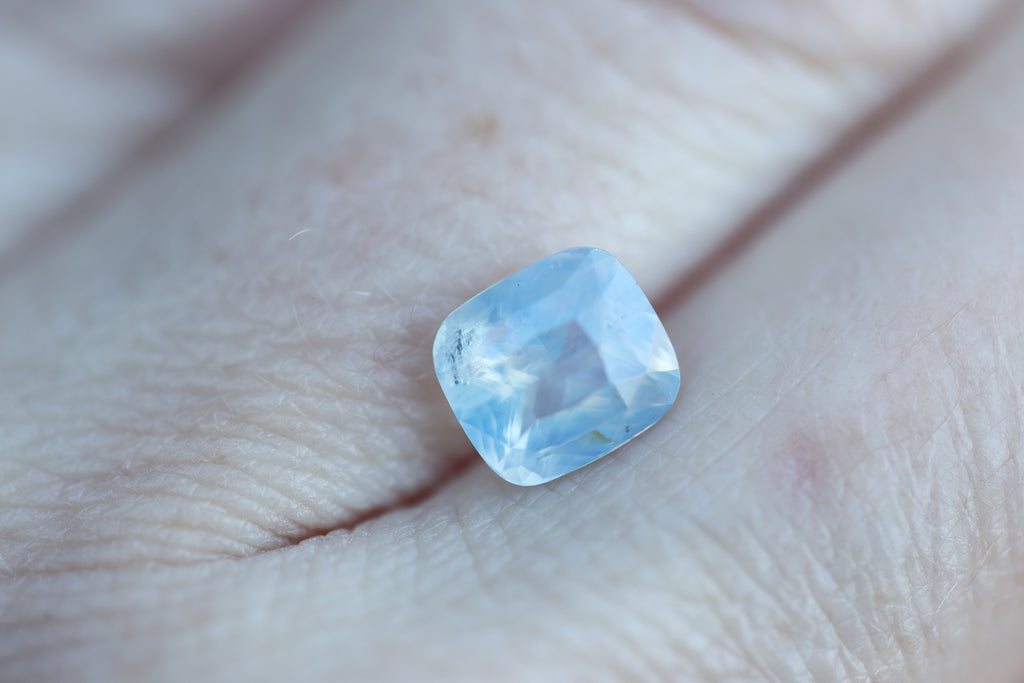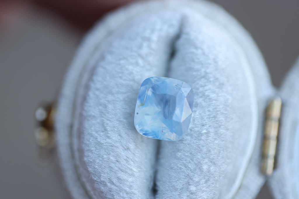 This absolutely magical opalescent sapphire is just a stunner! It's an icy platinum blue that will make the most gorgeous one of a kind ring! Such a special stone!