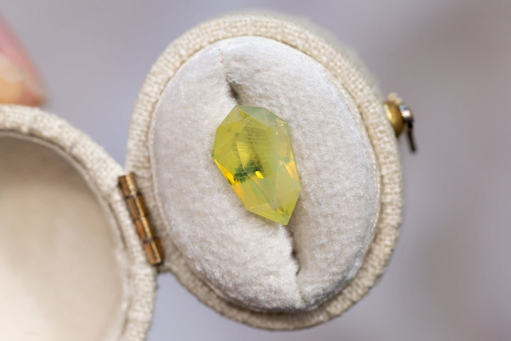 3.51ct Shield Opalescent Yellow Green Sapphire